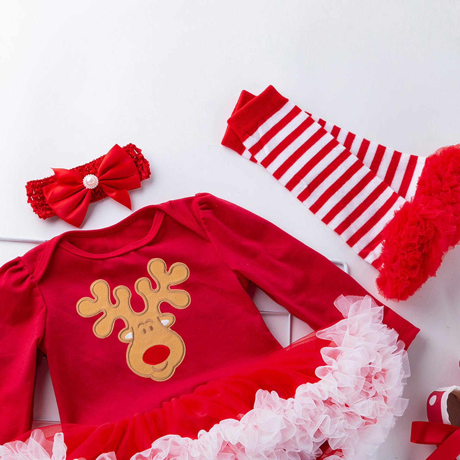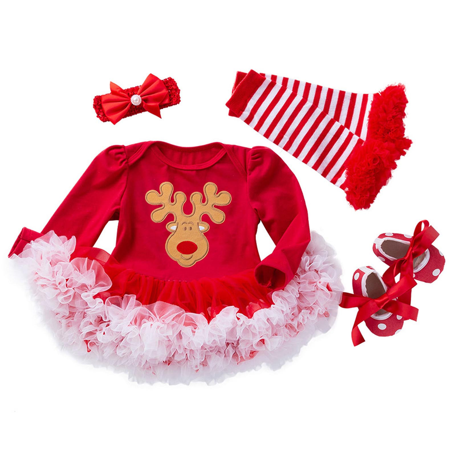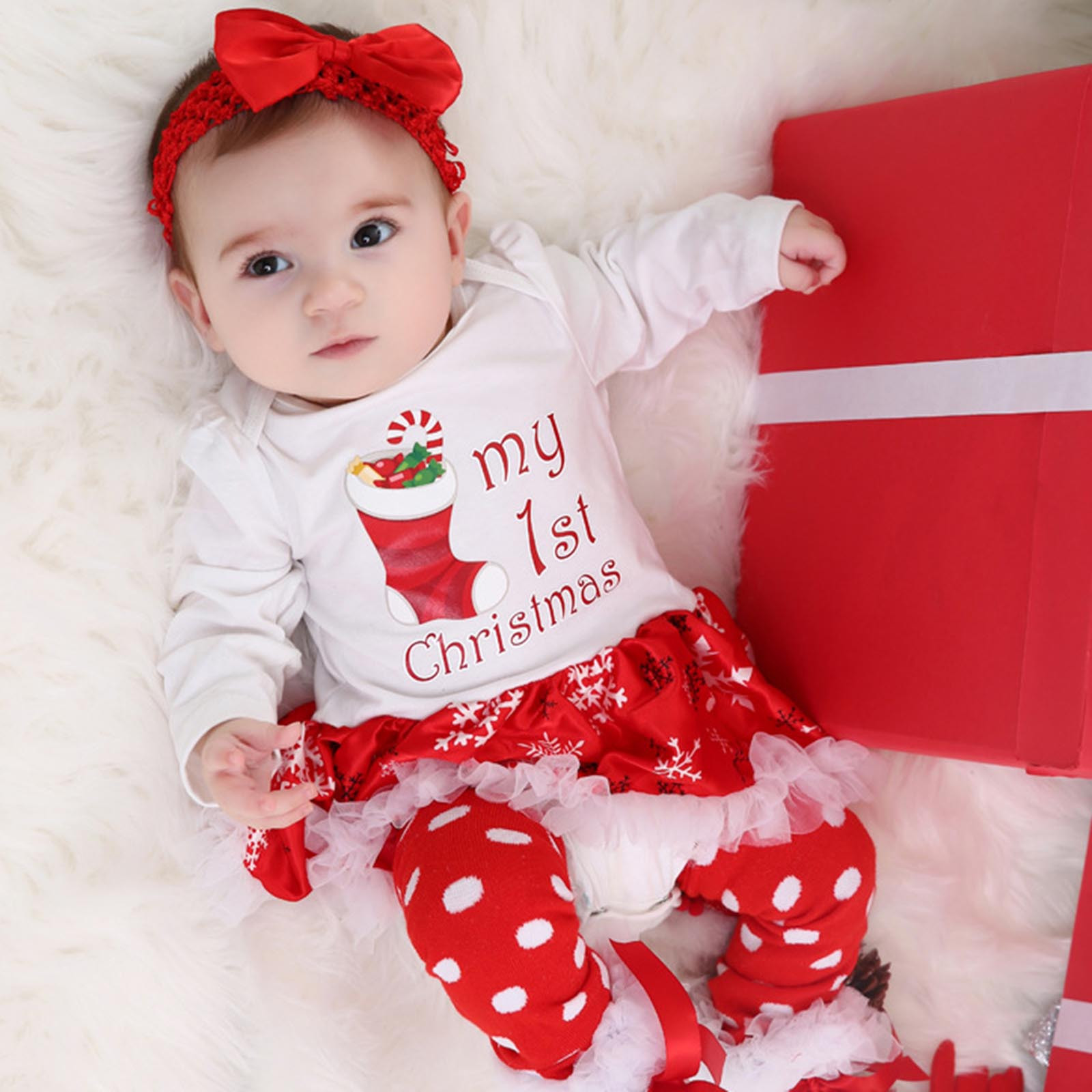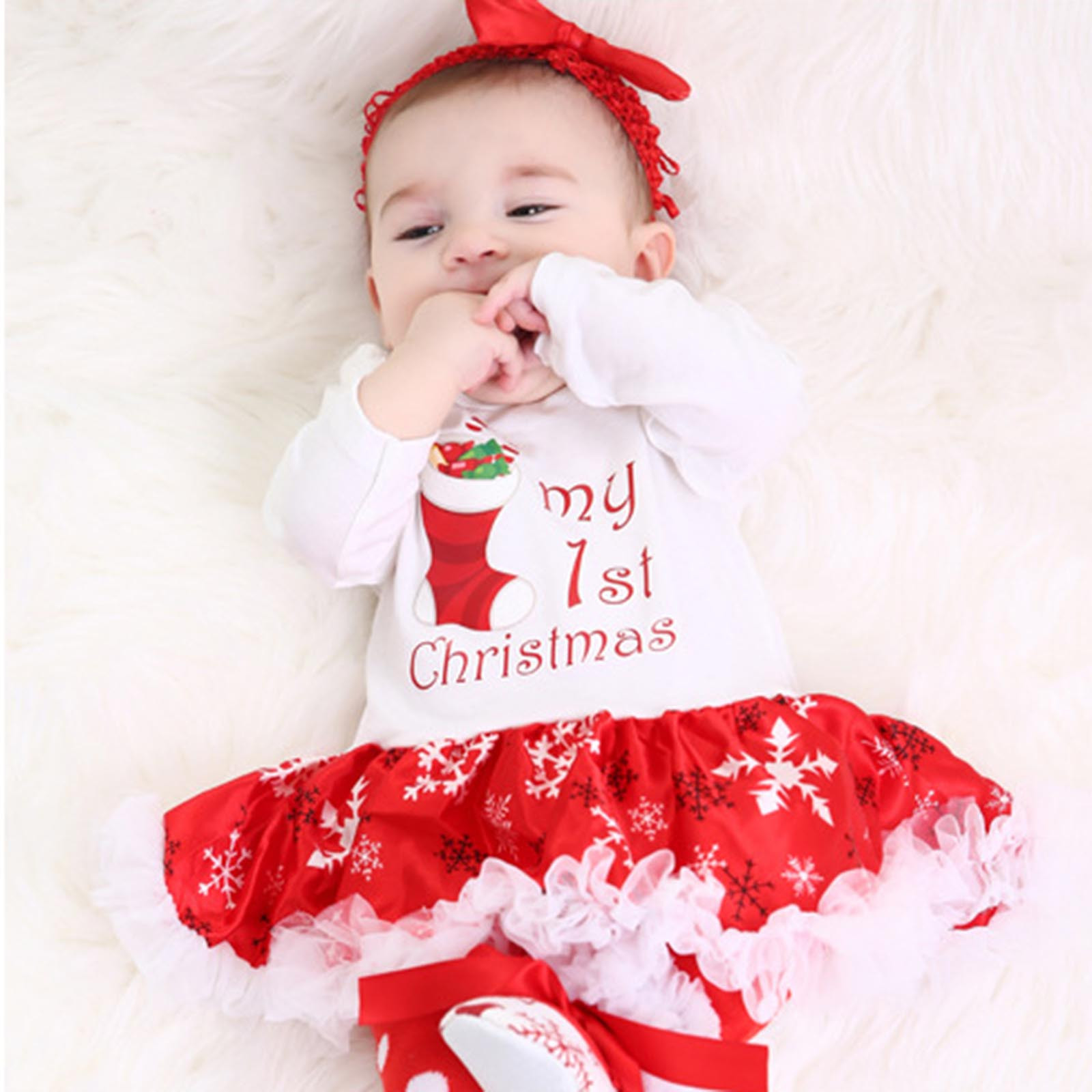 Рождественский подарок; Одежда для новорожденных; Хлопковый комбинезон с оборками для маленьких девочек; Платье с повязкой на голову; Комплект из 4 предметов