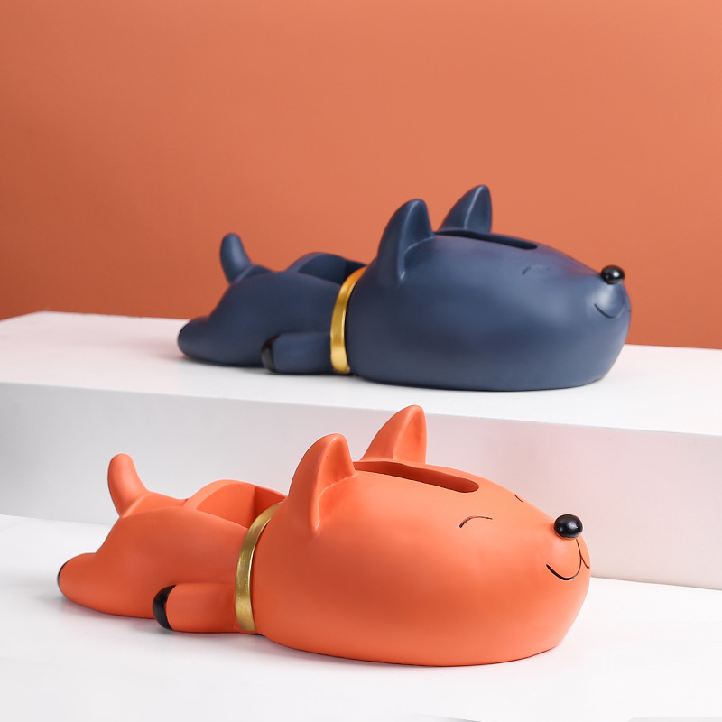 Новый держатель для салфеток в форме собаки из смолы, Милая модель животного, пульт дистанционного управления, коробка для хранения для рабочего стола, декор для гостиной