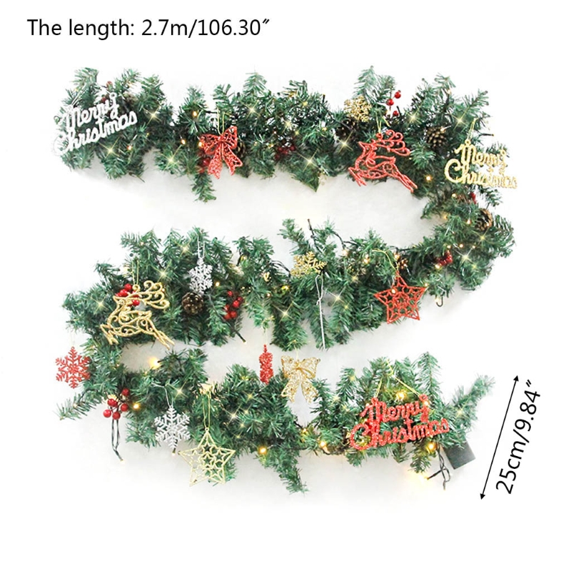 2,7 м 9 футов Рождественский светодиодный гирлянда из ротанга красные ягоды декоративная искусственная Рождественская елка лоза струнный светильник домашний декор