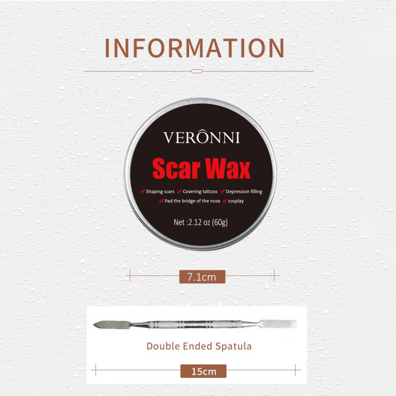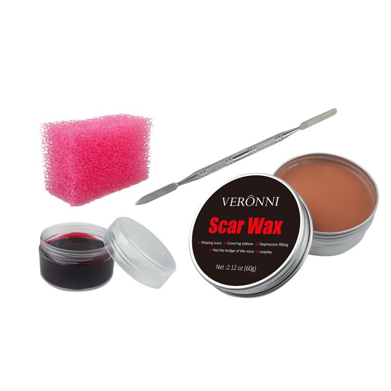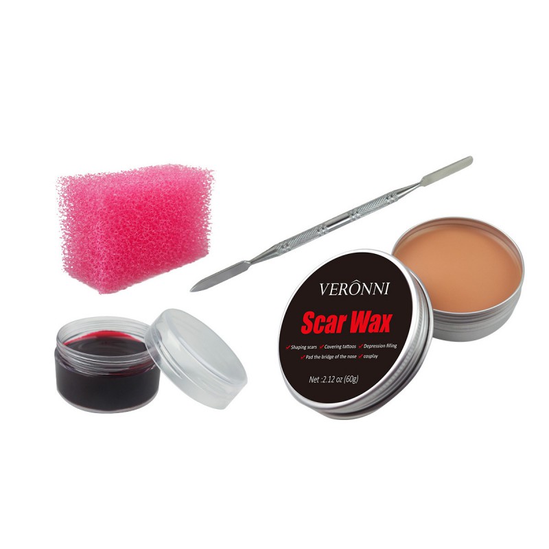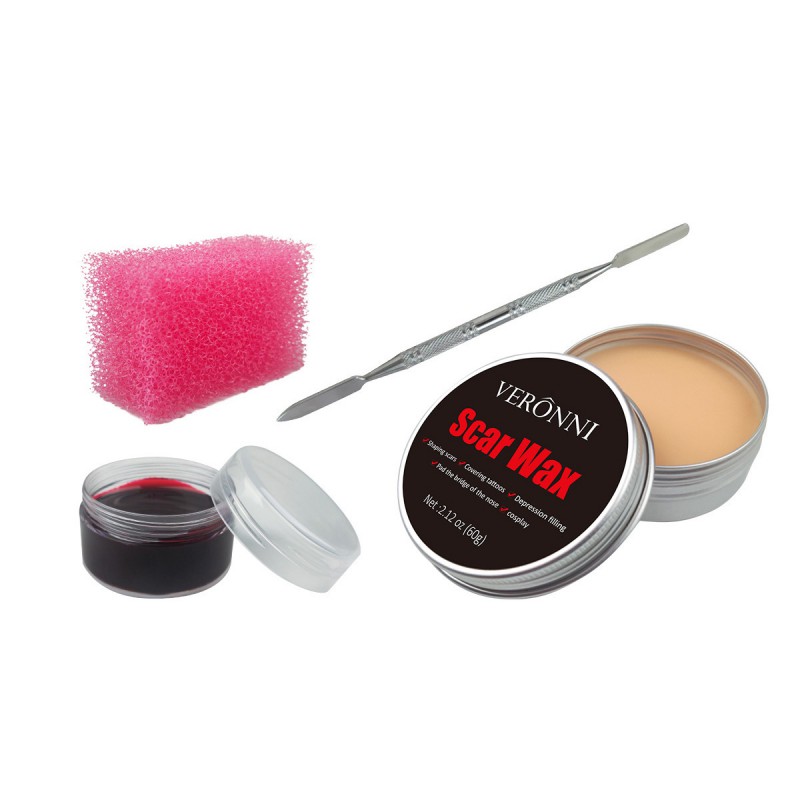 Посылка включает в себя: 1x двусторонний шпатель для помощи в применении воска, 1x60 г воск для шрамов, 1x20 г коагулированный гель для крови, 1 Stipple губки (все описаны вес нетто)