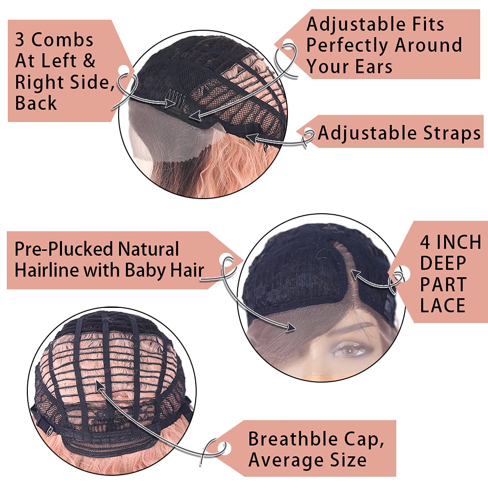 Короткий прямой парик с челкой RONGDUOYI длинный синтетический на сетке спереди