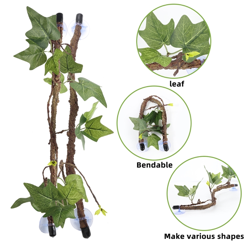 Лоза для восхождения под рептилию. Изготовлен из высококачественного пластика, гибкий, нетоксичный, безопасный и экологически чистый, с присоской на спине, что вы можете зафиксировать его на стекле.