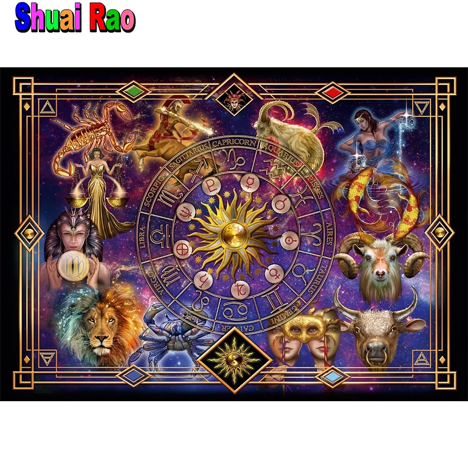 Астрология, Зодиак, 5d, сделай сам, алмазная живопись, полная дрель, мозаика, двенадцать созвездий, алмазная вышивка, подарок, домашний декор