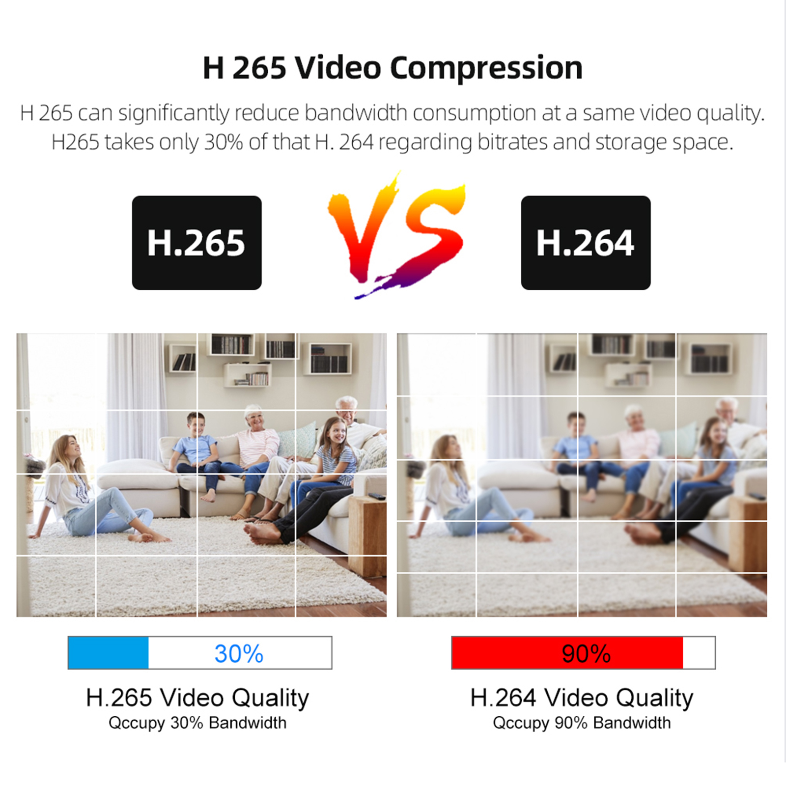 The camera has a wide field of view,rotates 355° horizontally and 65° vertically.You can see every part of your home with easy pan-and-tilt control through the V380 Pro App.