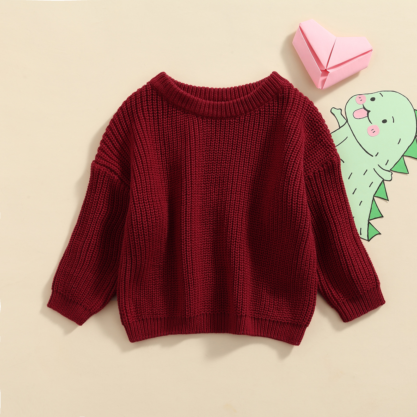 Свитера с круглым вырезом для малышей; Зимние теплые вязаные пуловеры ярких цветов с длинными рукавами