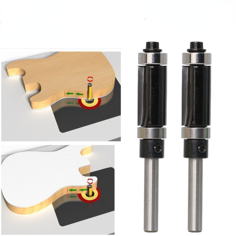 Top and Bottom Bearing Router Bit is great for all your trim applications. This bit can be used with either a top or bottom template. Especially useful for template work when routing rounded or curvy wood with sensitive end-grains. The top and bottom bearings allow you to flip over the wood stock when you reach "up-grain" and rout that segment in a "down-grain" direction, maintaining uniform smoothness around the work-piece.
