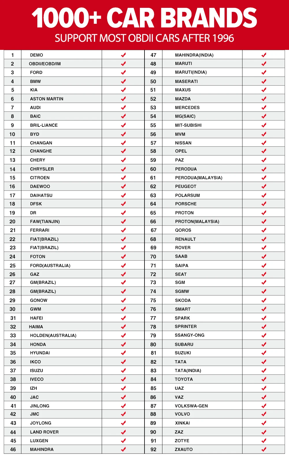 Для BENZ, для SMART, для SPRINTER, для BMW, для VW, для SKODA, для AUDI, для OPEL, для Lamborghini, для PORSCHE, для Maybach, для Euro Ford, для LANDROVER, для Jaguar, для ASTONMARTIN, для Bentley, для Rolls-Royce, для ROVER, для MINI, для VAUXHALL, Для DR, для FERRARI, для FIAT, для Abarth, для LANCIA, для Alfa Romeo, для Maserati, для BUGATTI, для PEUGEOT, для CITROEN, для RENAULT, для SAAB, для VOLVO, для OPEL, для GM, для GMSA, для Dacia, для SEAT ..