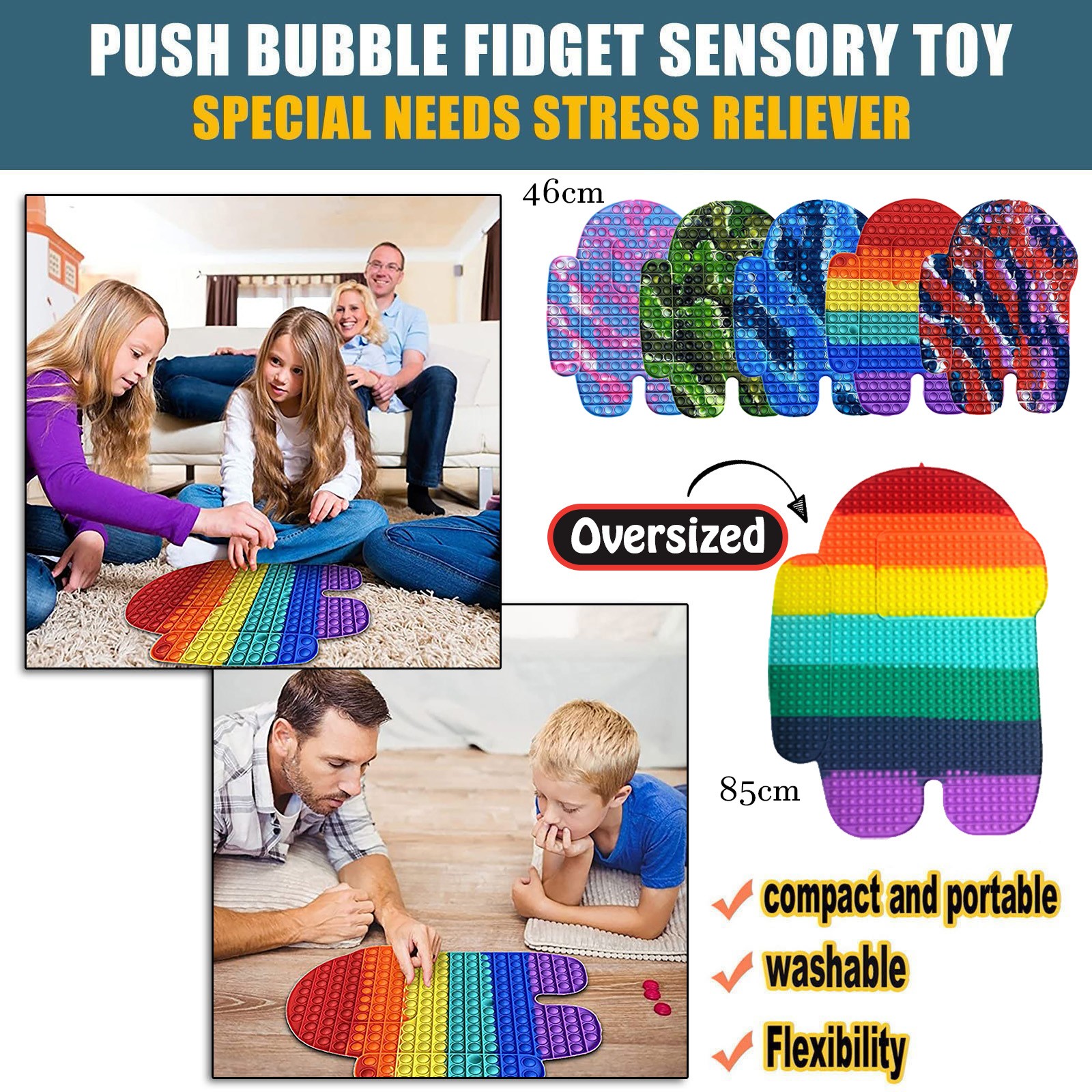 Игрушки Fidget 46x28 см/85x65 см XXXL, супер большие игрушки Fidget, игрушки для снятия стресса Poppet, большие игрушки для фитнеса, игрушки с нажимом Bubble Fidget, игрушки для снятия стресса, детские игрушки, игрушки для непоседы, снятие стресса