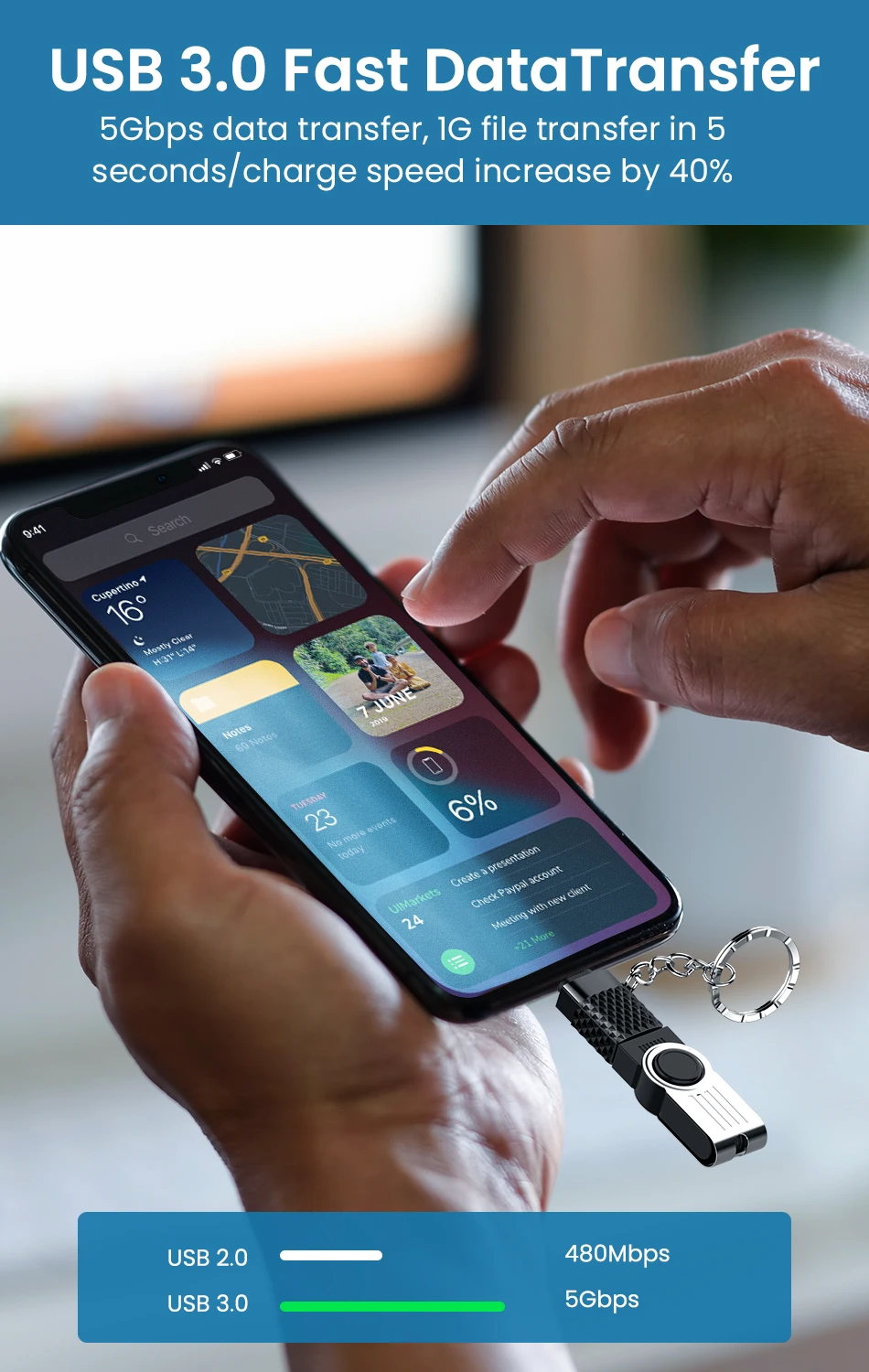 Мини USB 3,0 для освещения 8 Pin для iPhone OTG адаптер с брелоком для iOS 13 14 выше Система синхронизации данных OTG адаптер конвертер