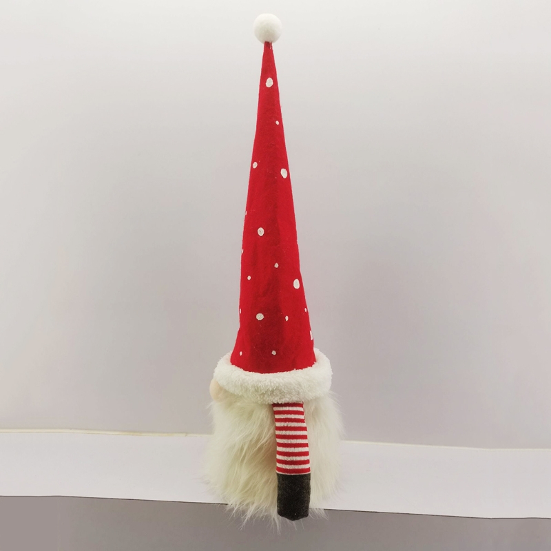 Это дерево декоративного гнома plushie сидит на вершине дерева вместо обычных звезд. Этот гном носит рождественскую шляпу и имеет свисающие ноги. Это знак удачи и счастья.