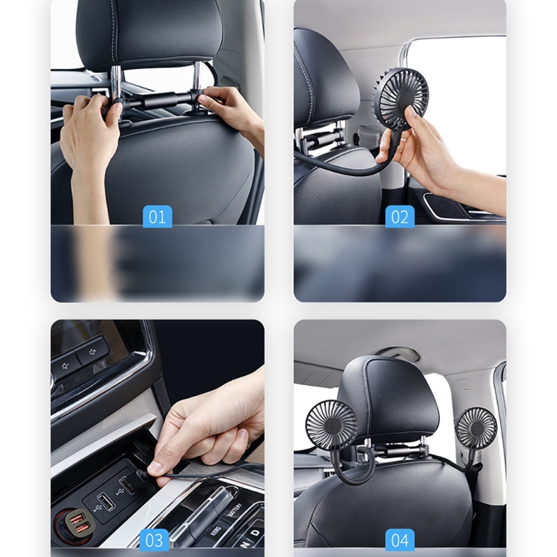 67JA автомобильный вентилятор для переднего заднего сиденья пассажира Портативный 2 скоростной Автомобильный Вентилятор подголовник 360 ° вращающийся на заднее сиденье охлаждающий воздушный вентилятор