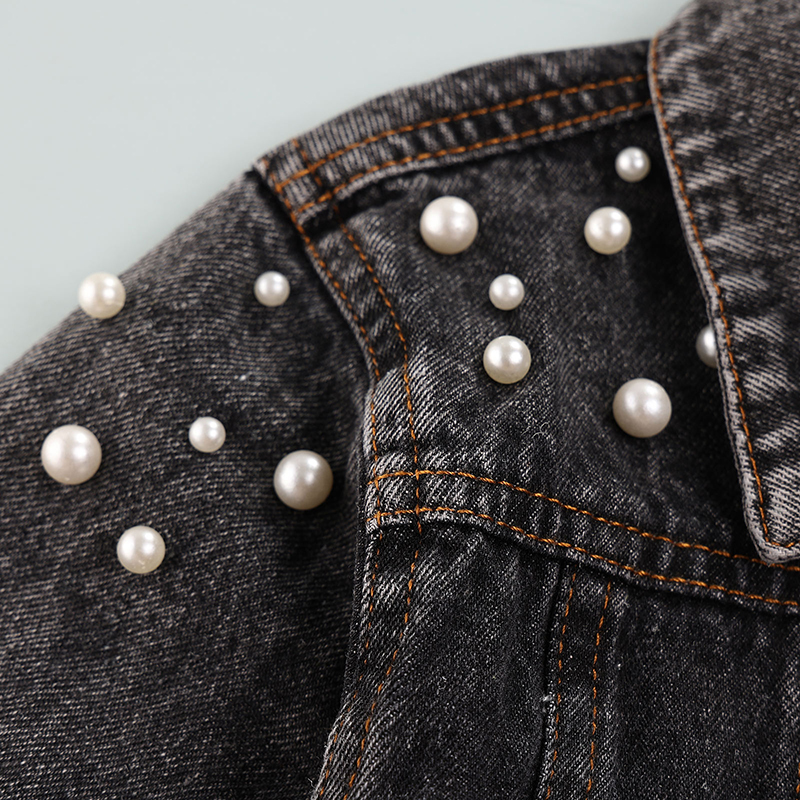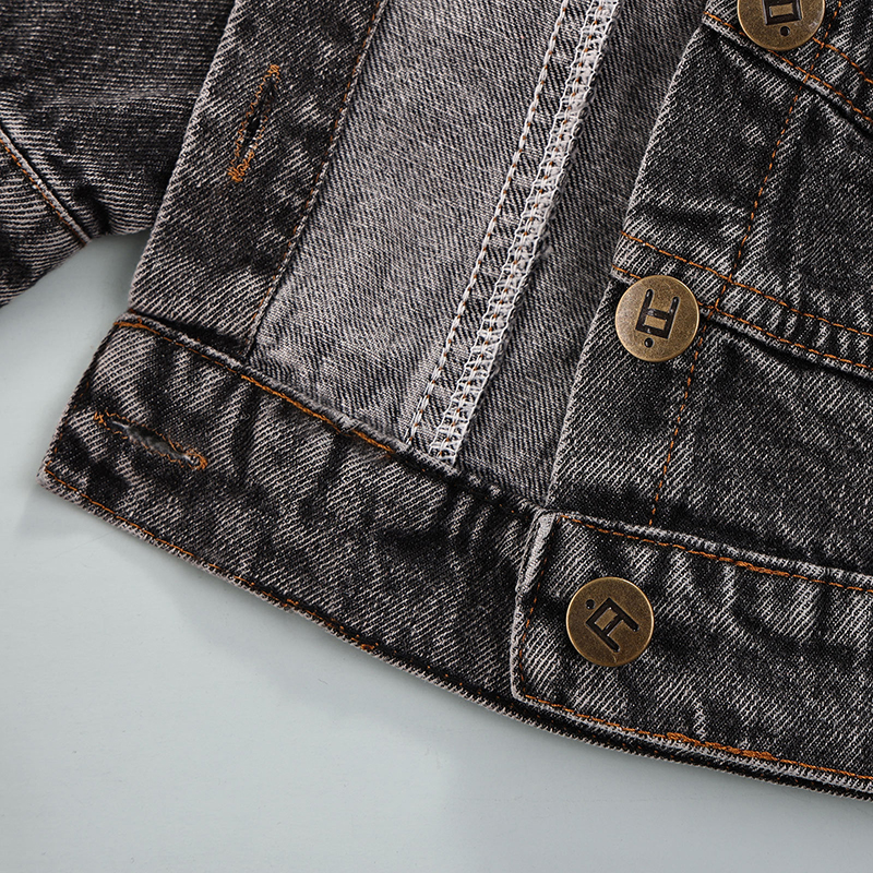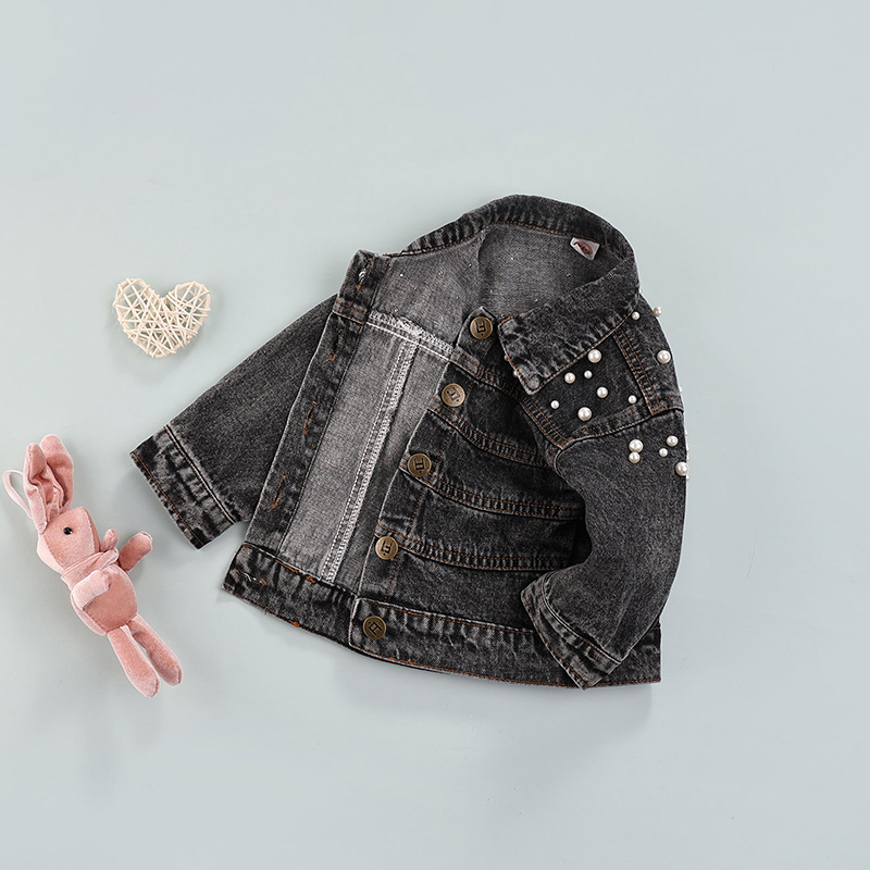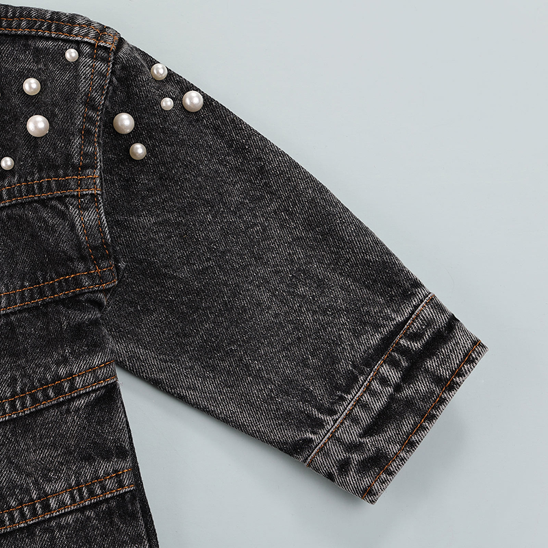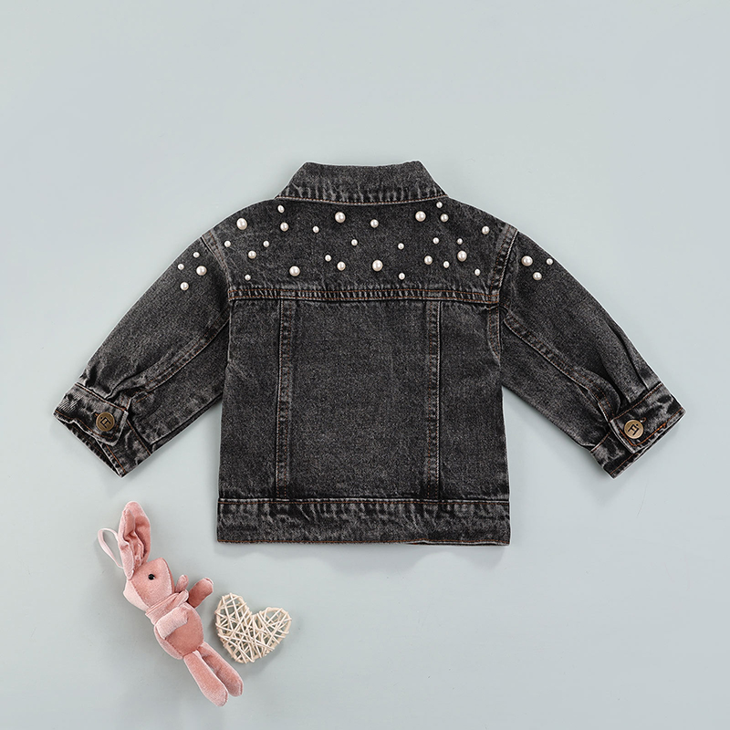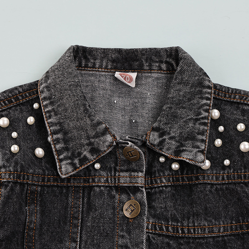 Детское пальто для мальчиков и девочек джинсовое платье с длинными рукавами и жемчужными лацканами кардиган с пуговицами осенние свободные топы черный