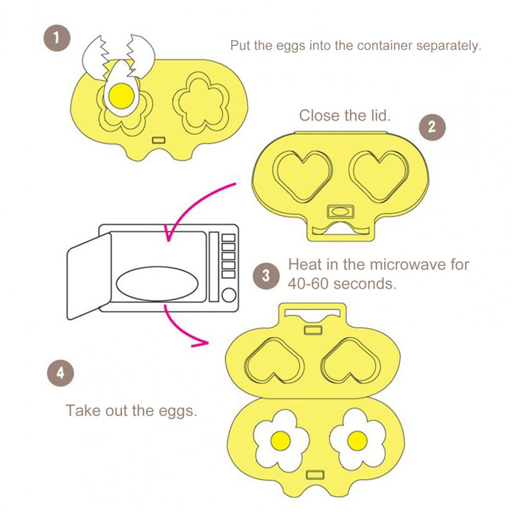Цветочный узор с сердечками, вы можете варить яйца в форме цветка и сердца, а форма термостойкая, антипригарная и легко моется.