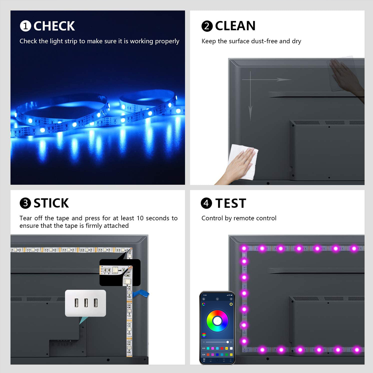 6.5 футов/16,4 фута, светодиодный, ленточный светильник, светильник с подсветкой, самоклеющийся, лампы, питание от USB, управление клавишами, декоративные, TV