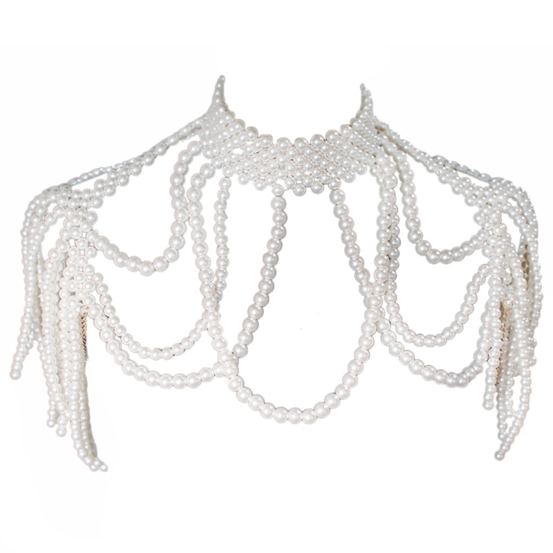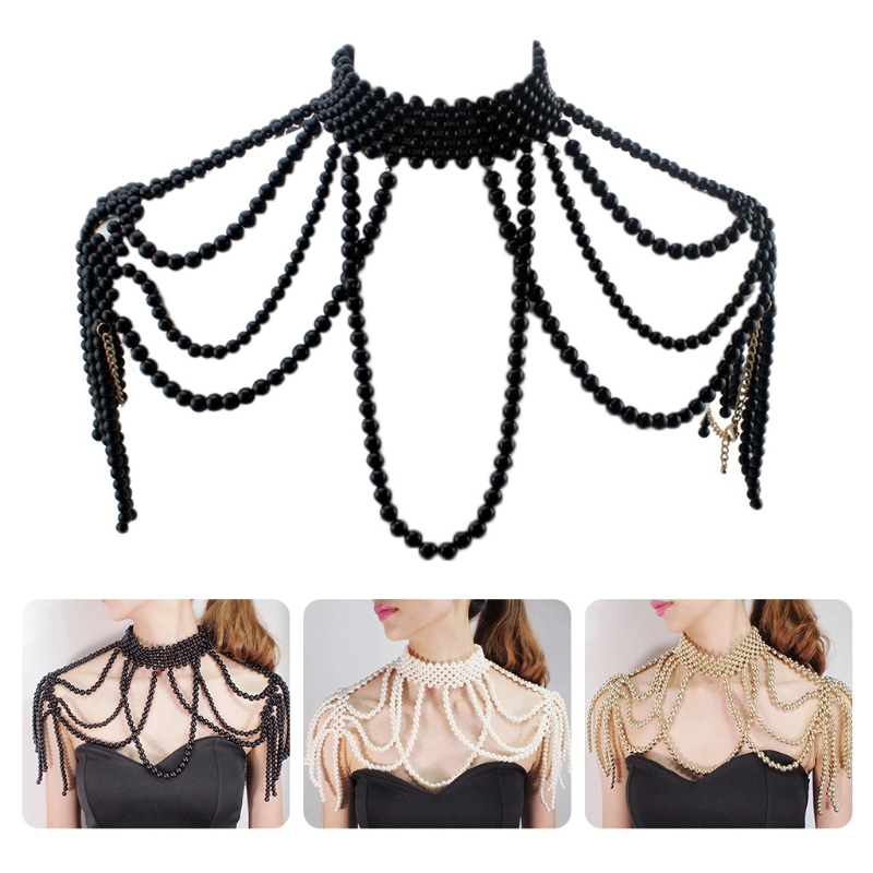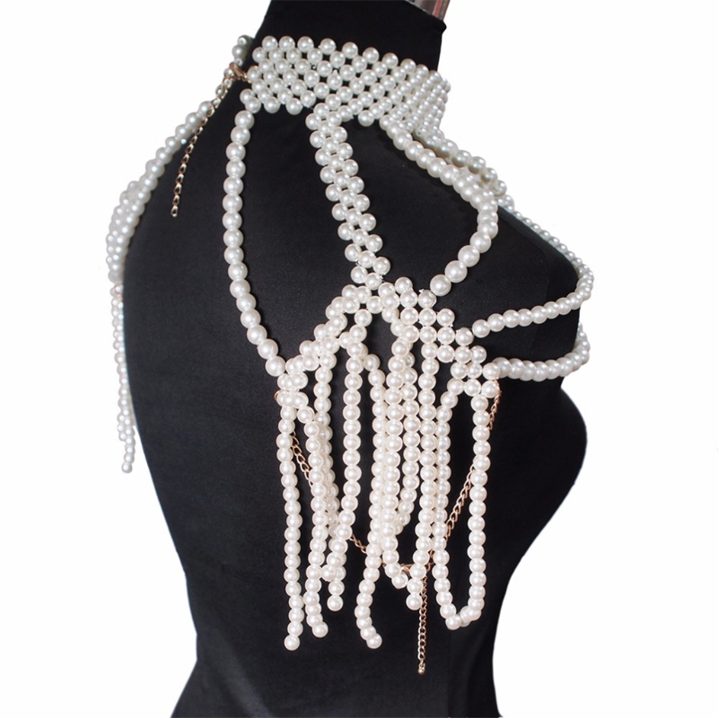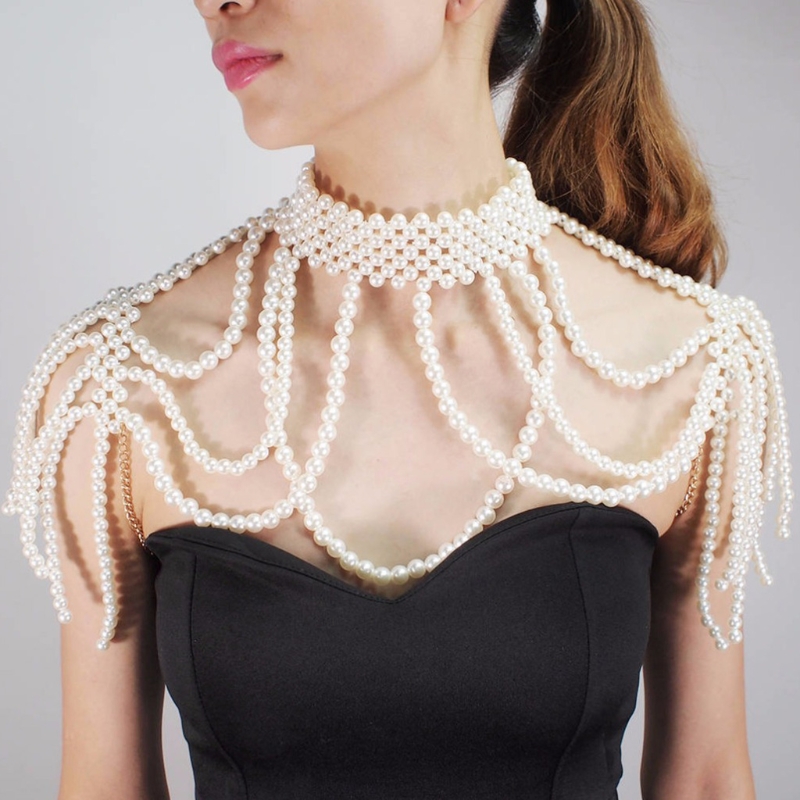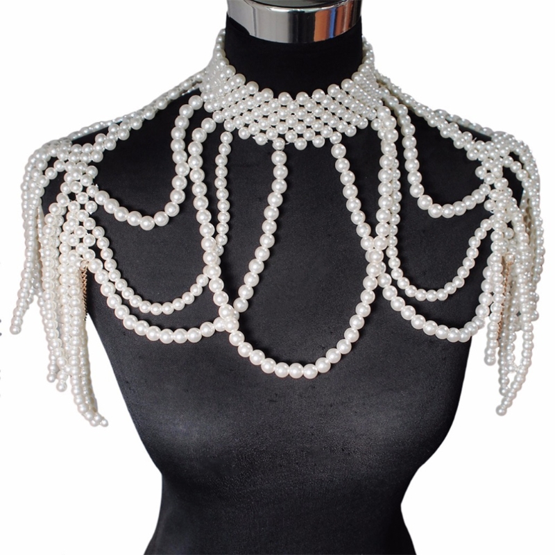 Имитация жемчуга Бусы тела ожерелье для женщин Поддельный Воротник нагрудник ювелирные изделия Наплечная цепь кисточки жгут чокер Dickey