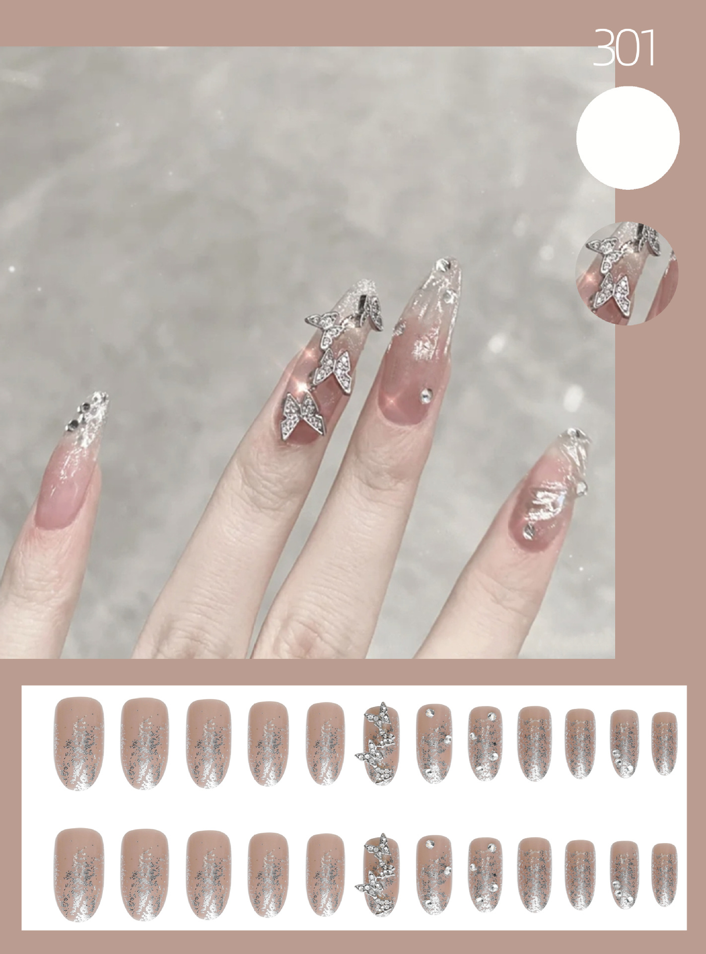 24 шт. Блестящая бабочка накладки для ногтей Клей Тип съемный длинный абзац Модный маникюр экономит время накладные накладки для ногтей EY669