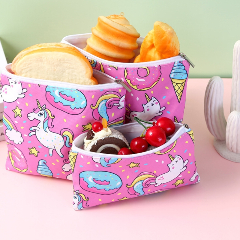Тканевый и термополиуретановый материал, сумка для обеда, сумка для закусок, сумка для хлеба, набор из 3 мультяшных узоров, сумки для обеда, сэндвич изоляционная сумка для обеда