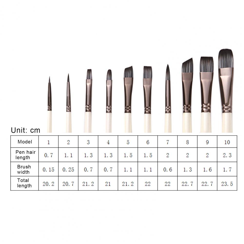 В каждом наборе 10 разных размеров акварельных кистей для рисования.