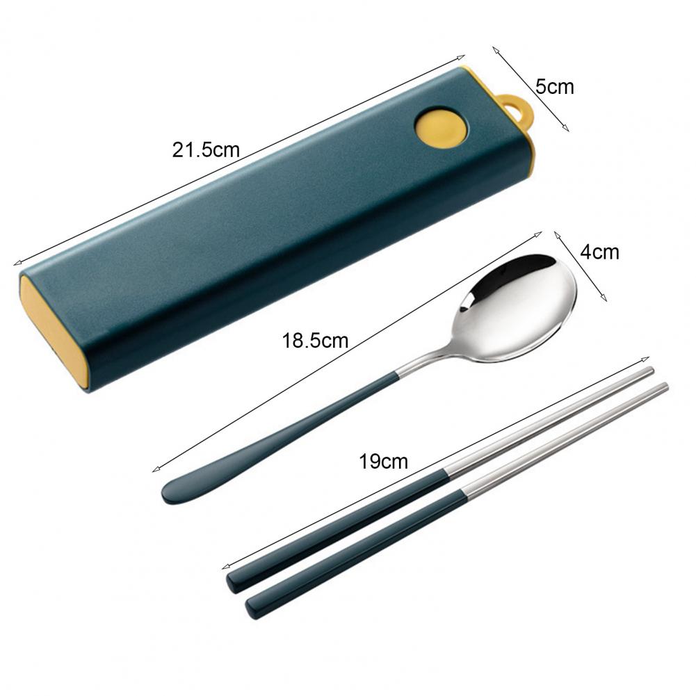 Длина ящик для переноски-21,5 см, а ширина-5 см. Длина ложка 18,5 см и ширина составляет 4 см. Длина палочек для еды 19 см.