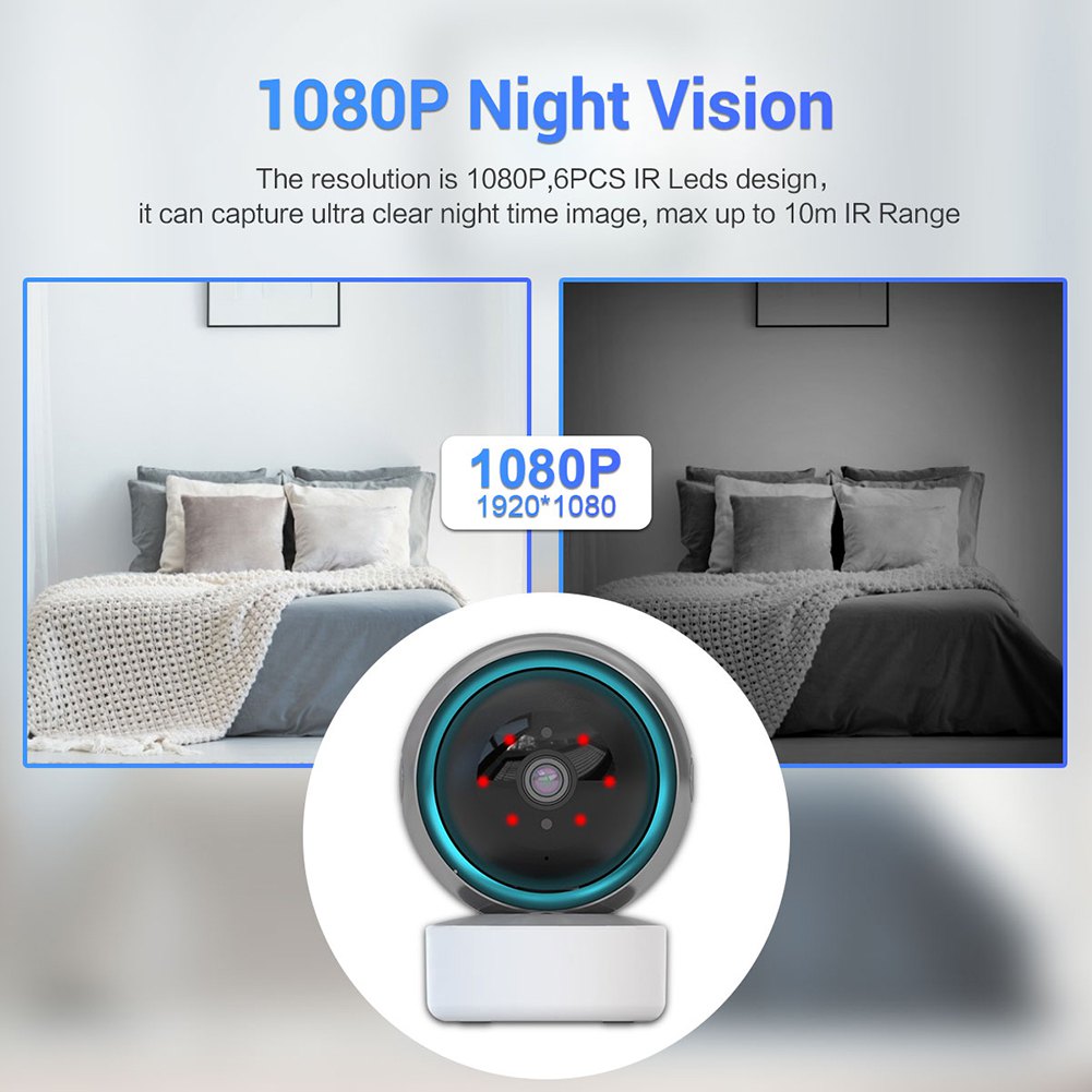 Разрешение 1080P,6 ИК-светодиодов, он может захватывать ультра четкое изображение в ночное время, максимальный ИК-диапазон до 10 м.