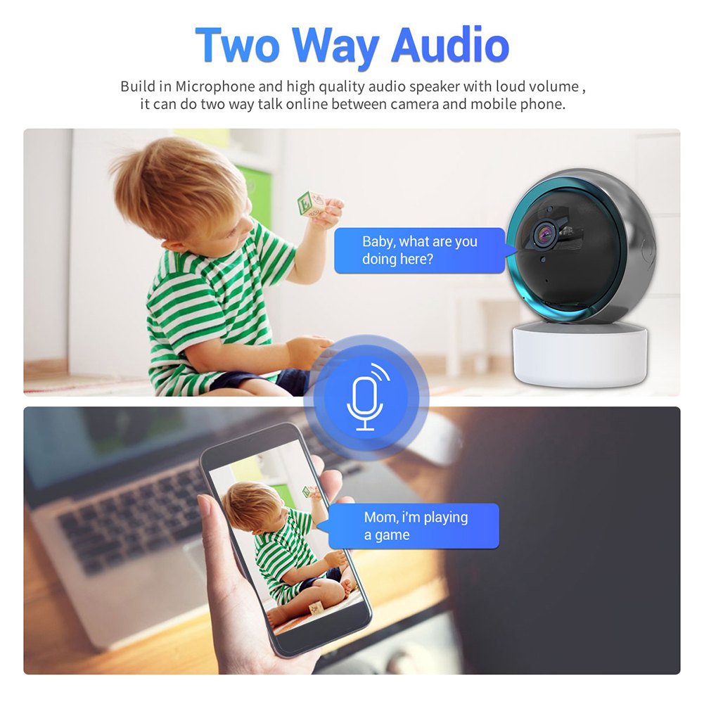 Встроенный микрофон и высококачественный аудио-динамик с громким громкостью, он может вести двусторонний разговор онлайн между камерой и мобильный телефон.
