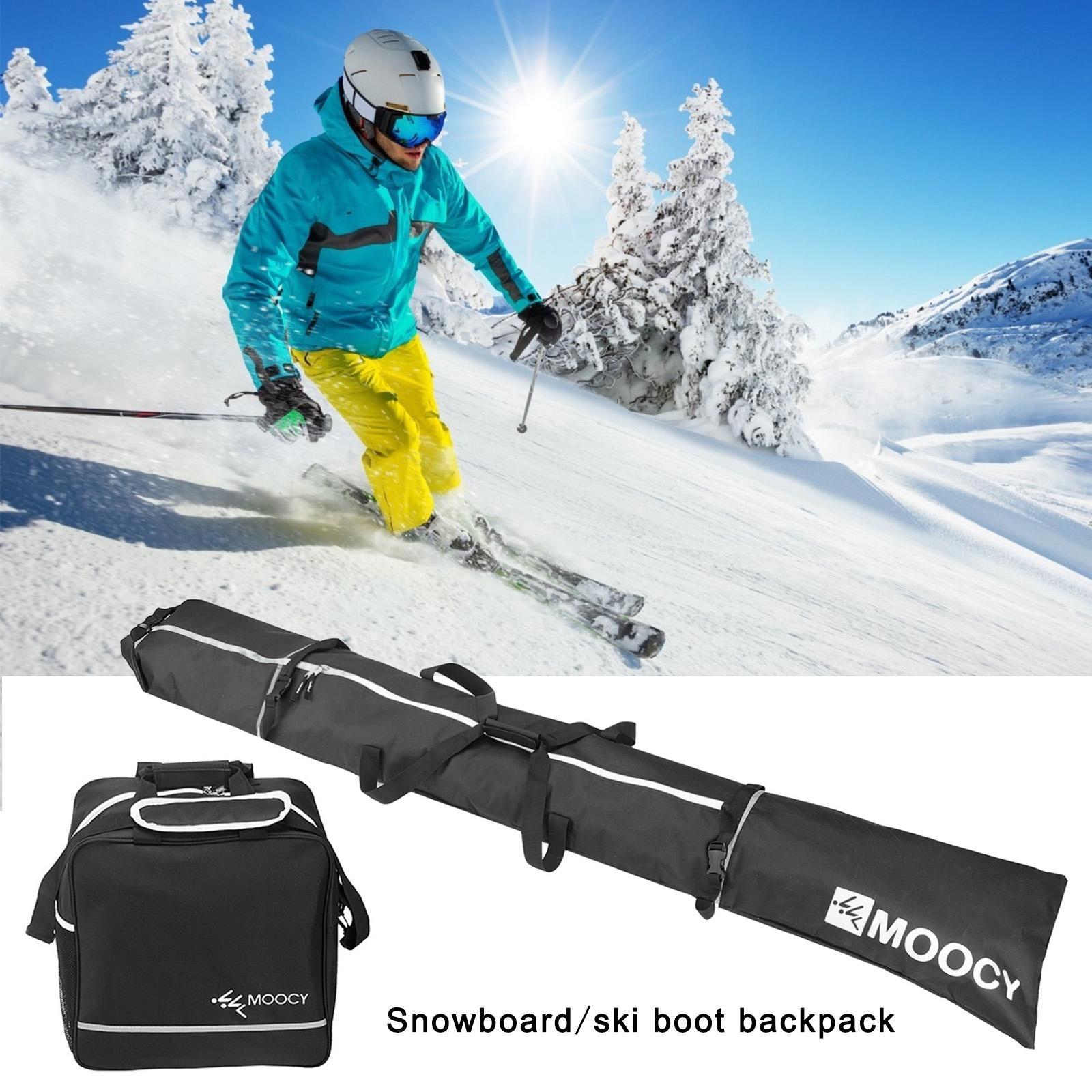 3. Внутри имеется достаточно места для лыж и палок. Сумка для ботинок легко подходит для обуви американского размера 13, шлема для взрослых, перчаток, очков, шапок и других запасных мест. Сочетание сумки для сноуборда и сумки для лыжных ботинок может эффективно разместить все инструменты, связанные с лыжами.