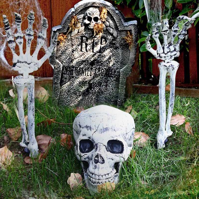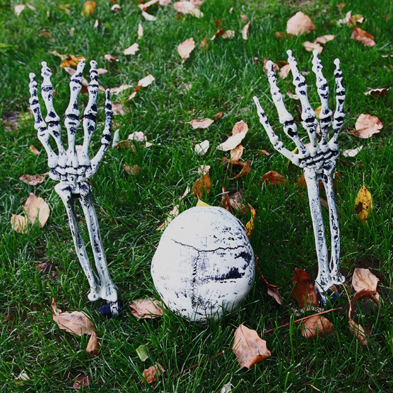 R2JC Хэллоуин череп рука двора Кол реалистичный Скелет голова фигурка украшение сада реквизит для дома с привидениями