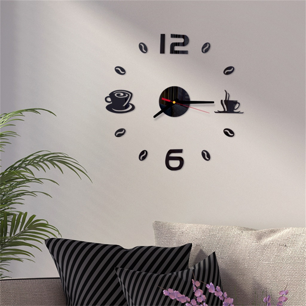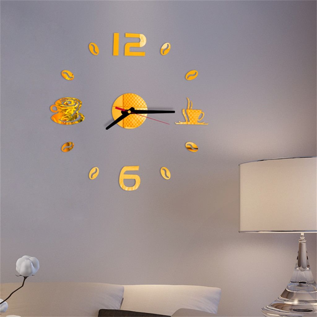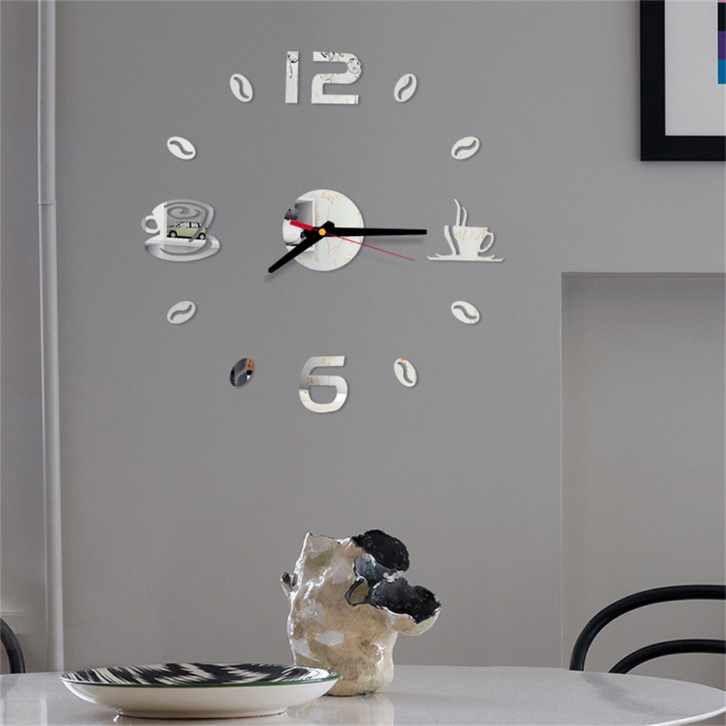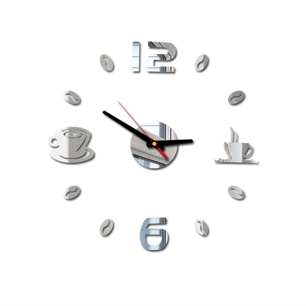 Настенная Наклейка с зеркальным эффектом и часами (без аккумулятора)