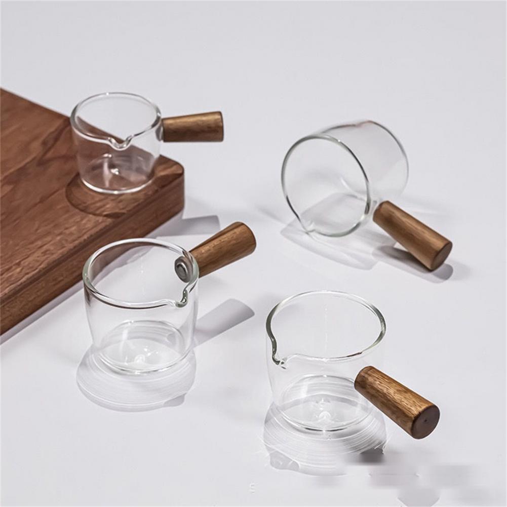 Дозатор для сливок, толстый, без капель, стеклянный, с деревянной ручкой, сироп, диспенсер для соусов, контейнер, чашка для дома