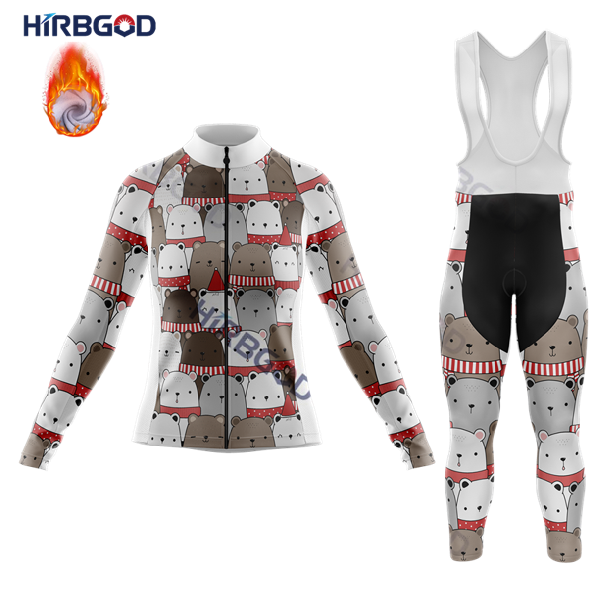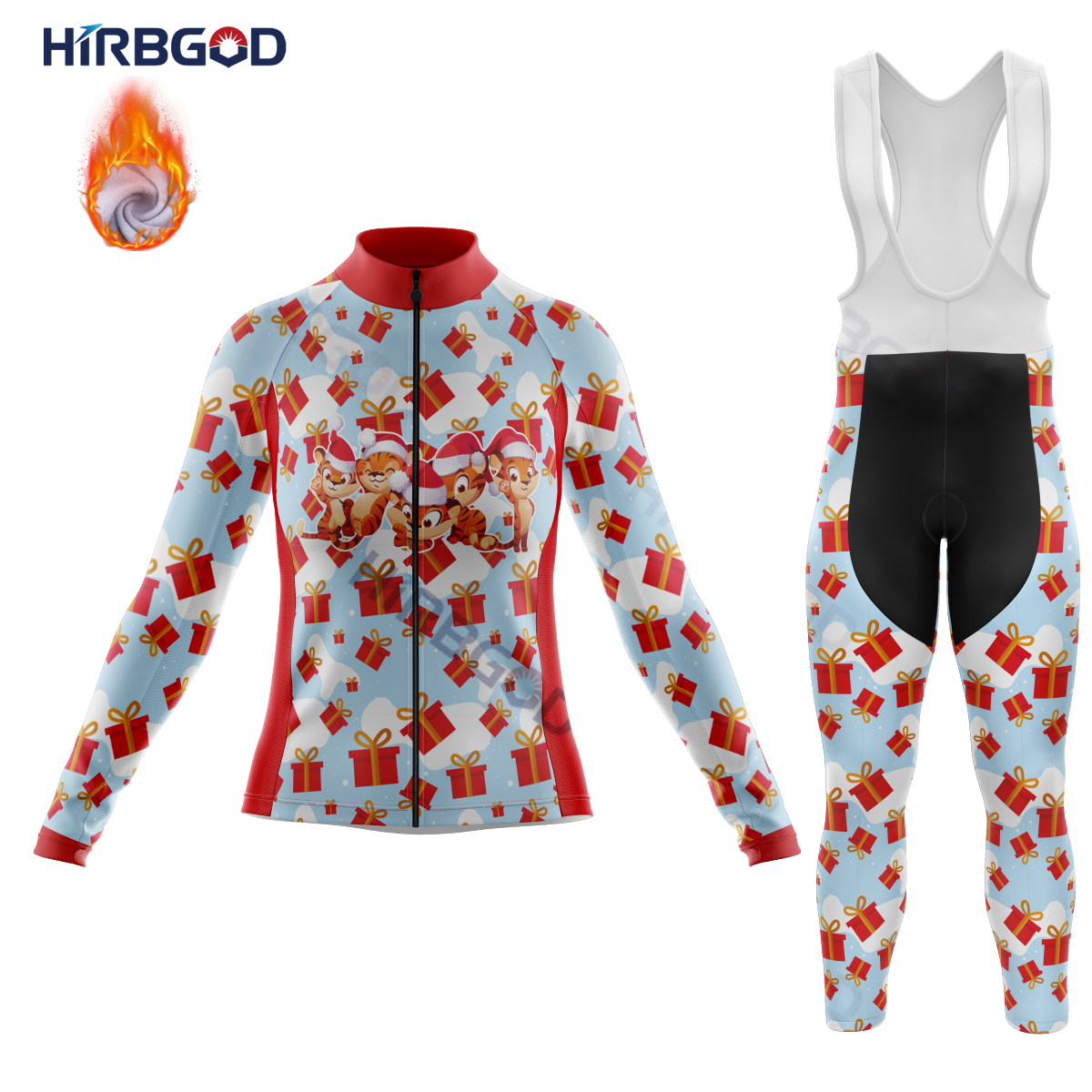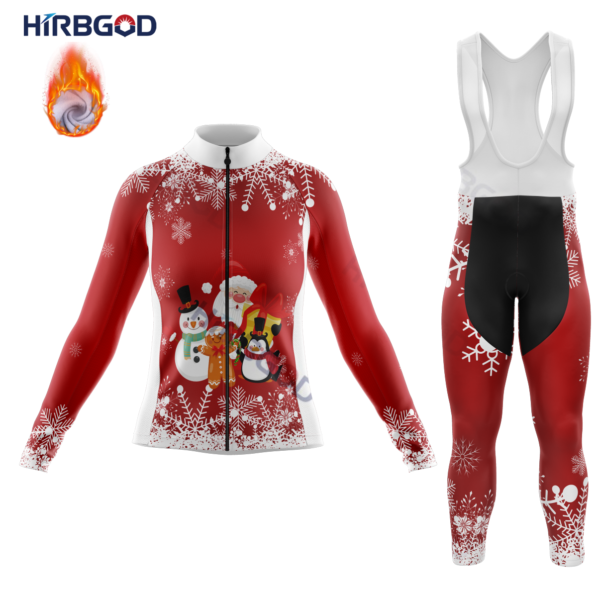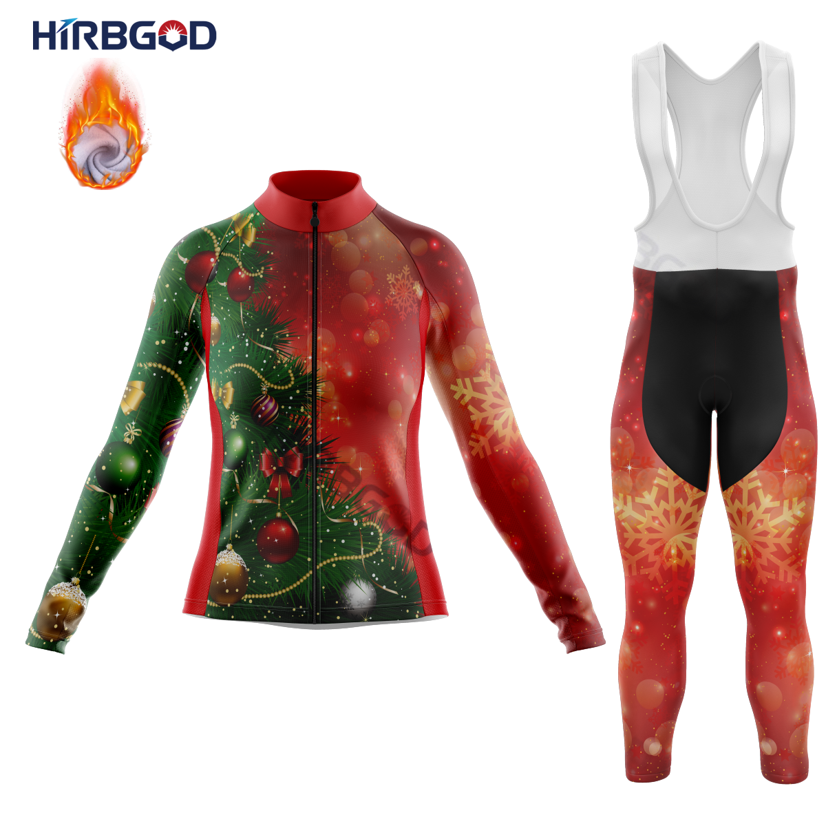 HIRBGOD рождественский стиль с гелевыми подушечками, снаряжение для верховой езды, зимняя одежда из теплого флиса, женские комплекты для велоспорта, 2022 промоакция, велосипедный костюм