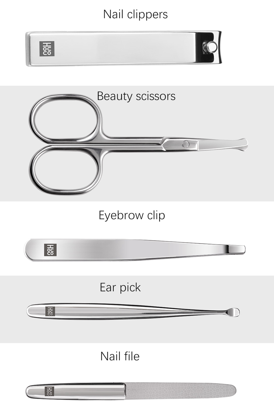 Youpin Huohou клиппер маникюрный набор из 5 предметов из нержавеющей стали Seel резак инструменты с пинцетом для бровей шум триммер ушной мешок для сбора