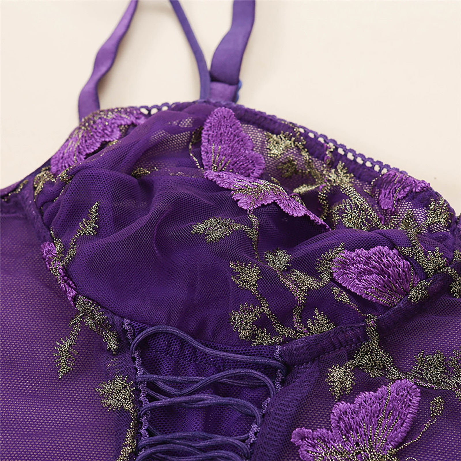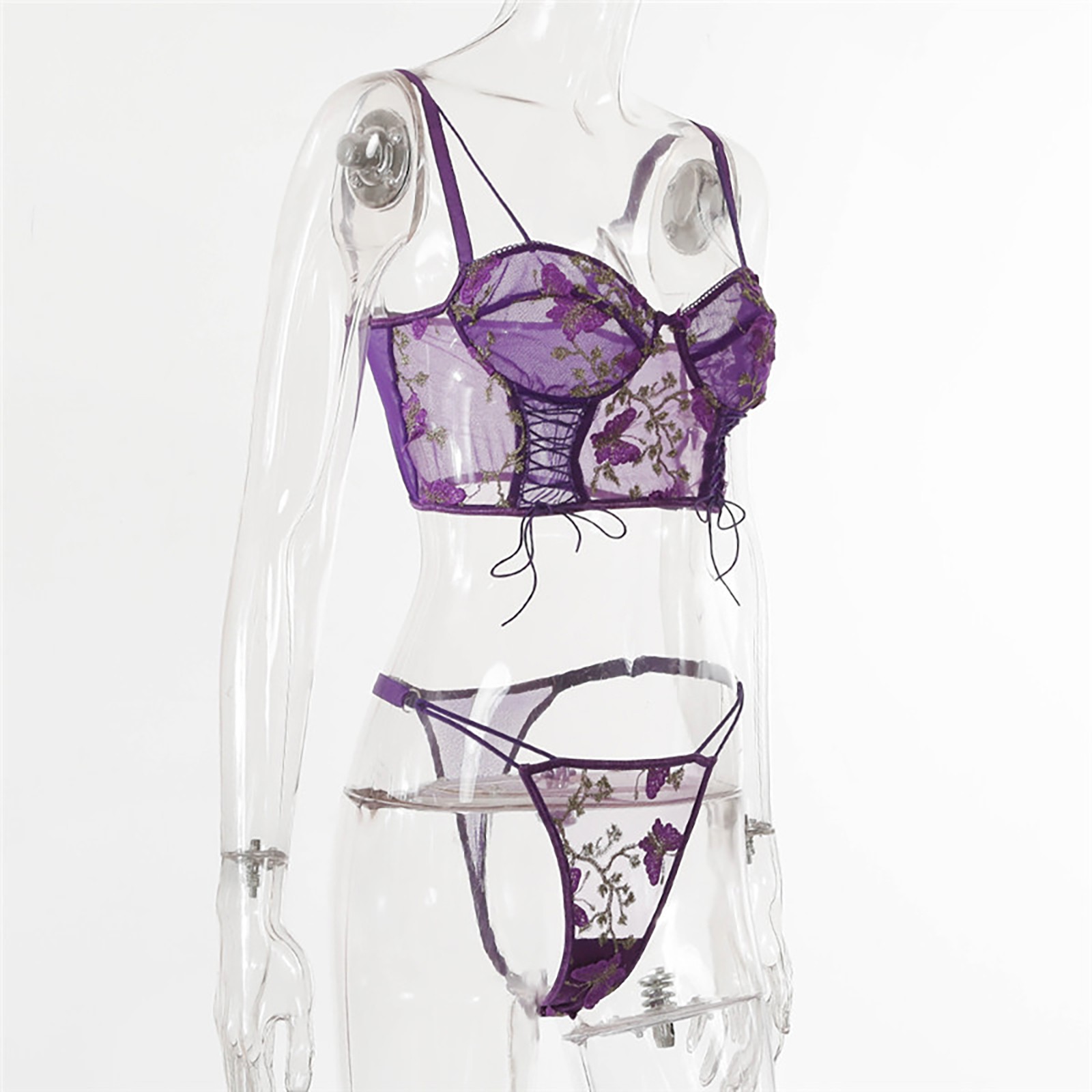 Женское кружевное нижнее белье с вышивкой и кружевным вырезом