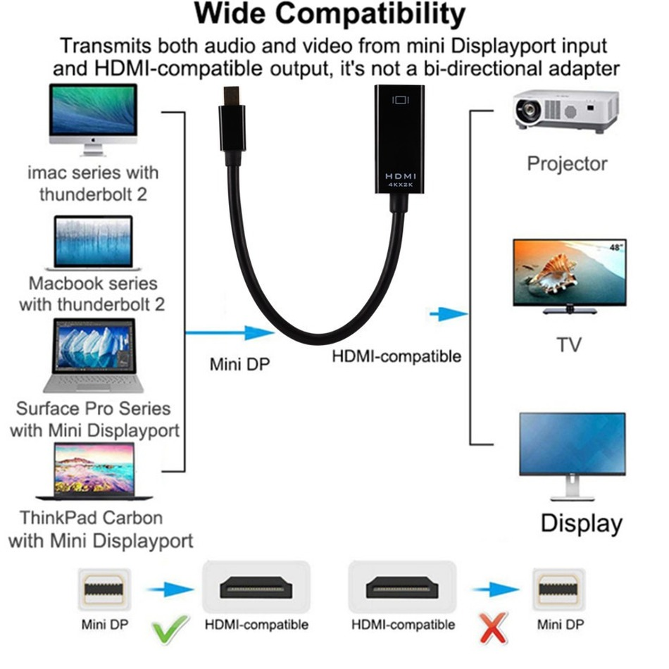 Совместим с HDMI 2,0, этот адаптер Mini DisplayPort 4K к HDMI обеспечивает четкое изображение в вашей цифровой жизни.