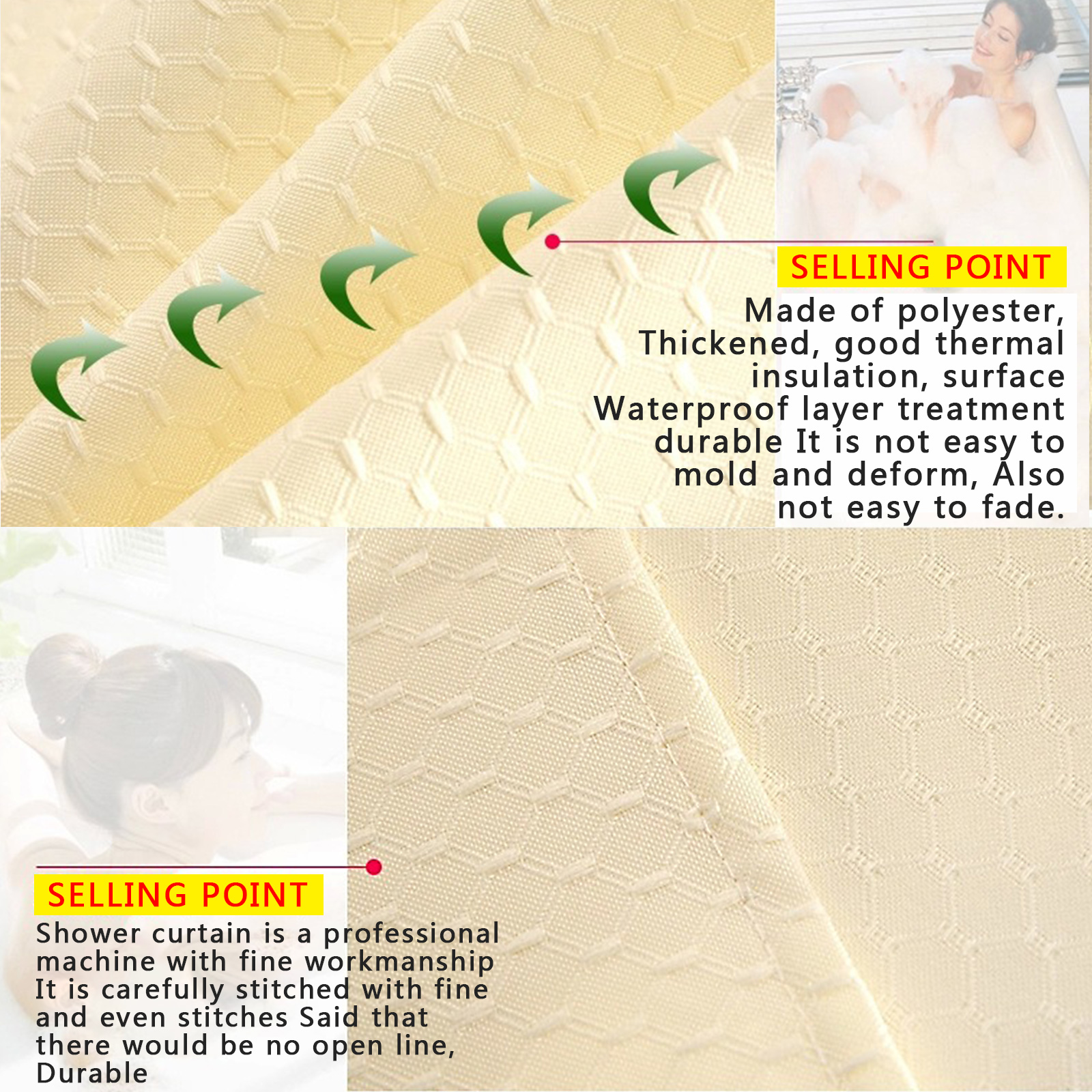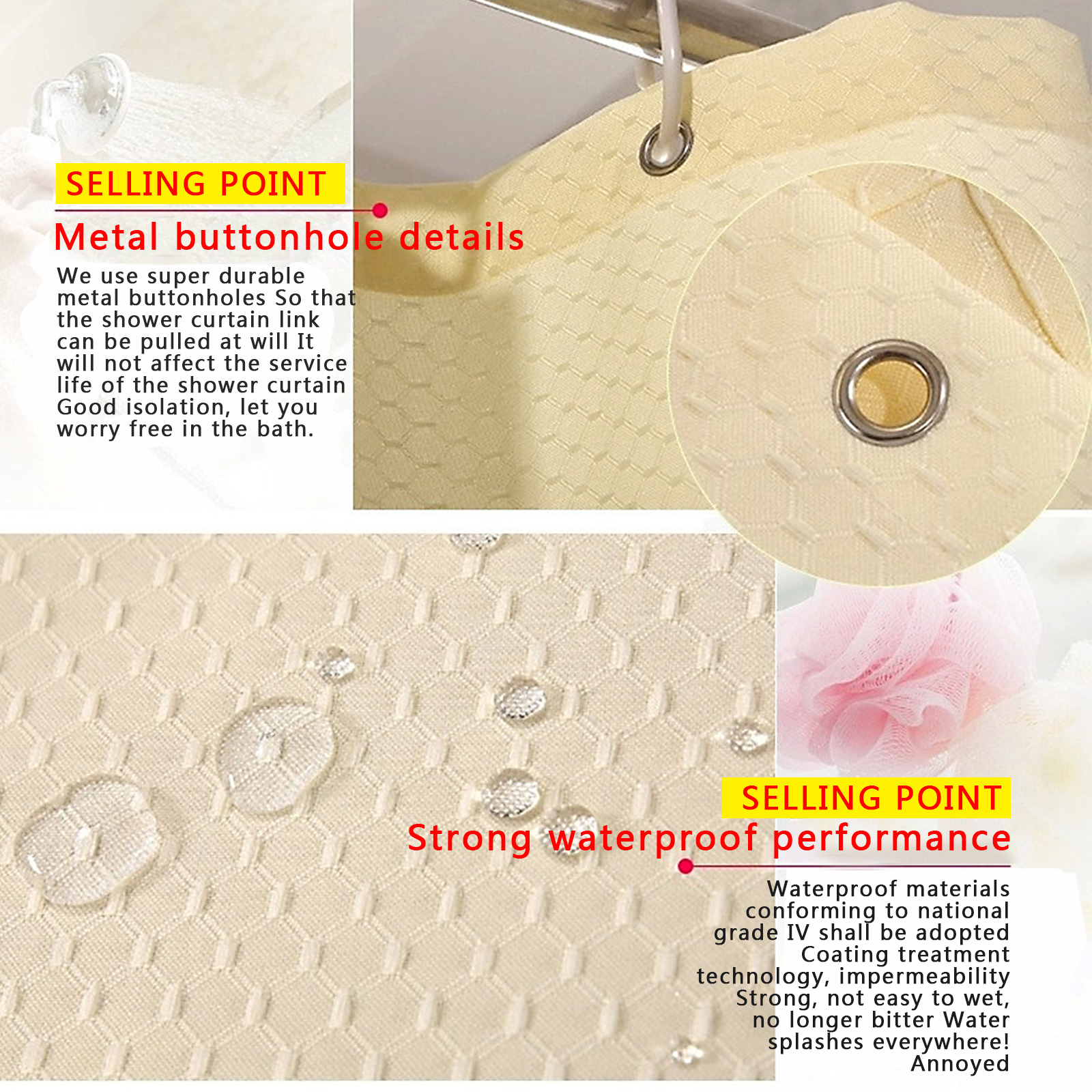 2. Отличный водоотталкивающий материал: ткань отталкивает воду и защищает от замачивания, это принесет его для длительного использования и уменьшает влагу в душевой комнате.