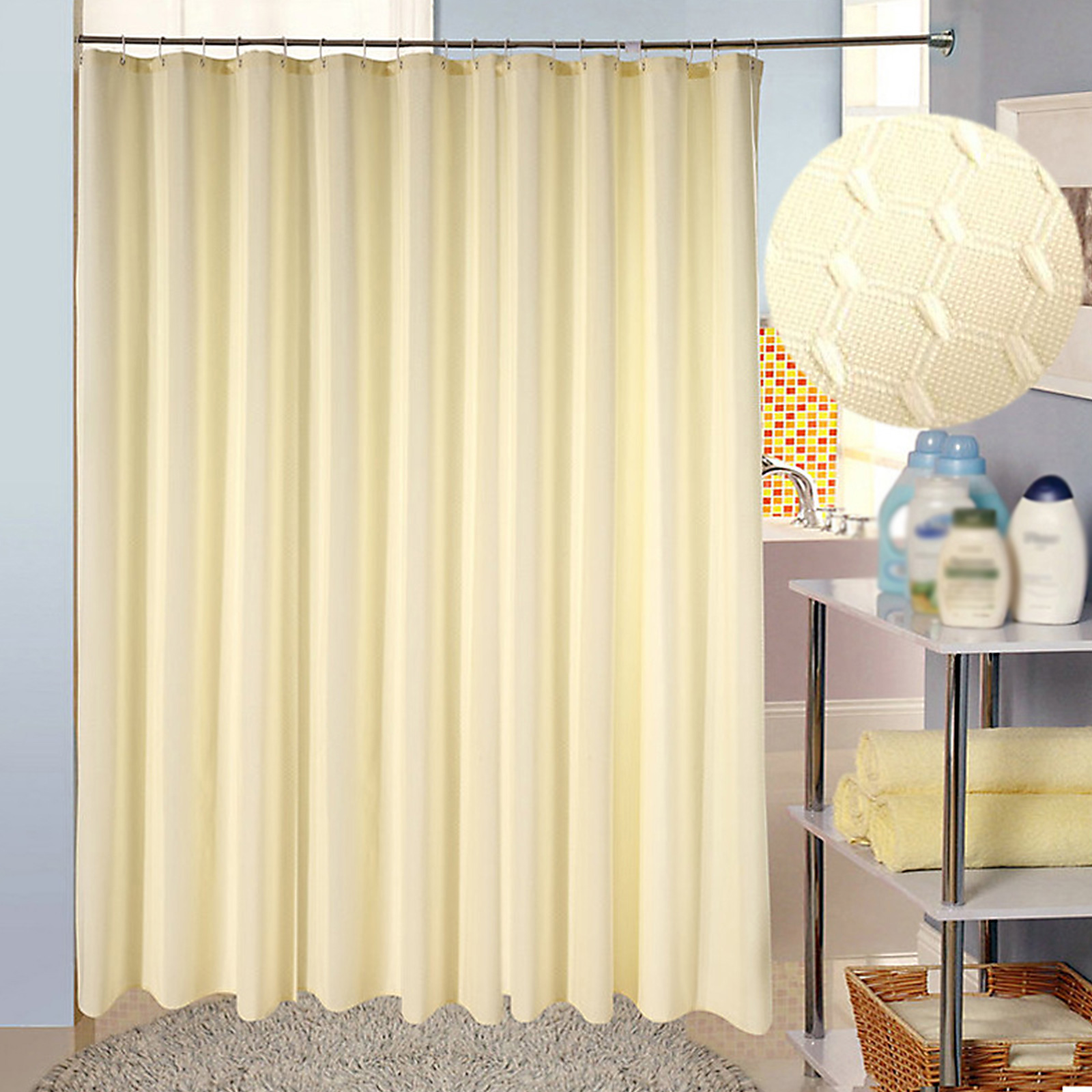 3. Высокий стандартный стиль: 180 см ширина на 180 см длина, чтобы соответствовать стандартным ваннам и душам, с усиленной защитой от ржавчины умственные прокладки в голове и поставляются с адекватными крючками.