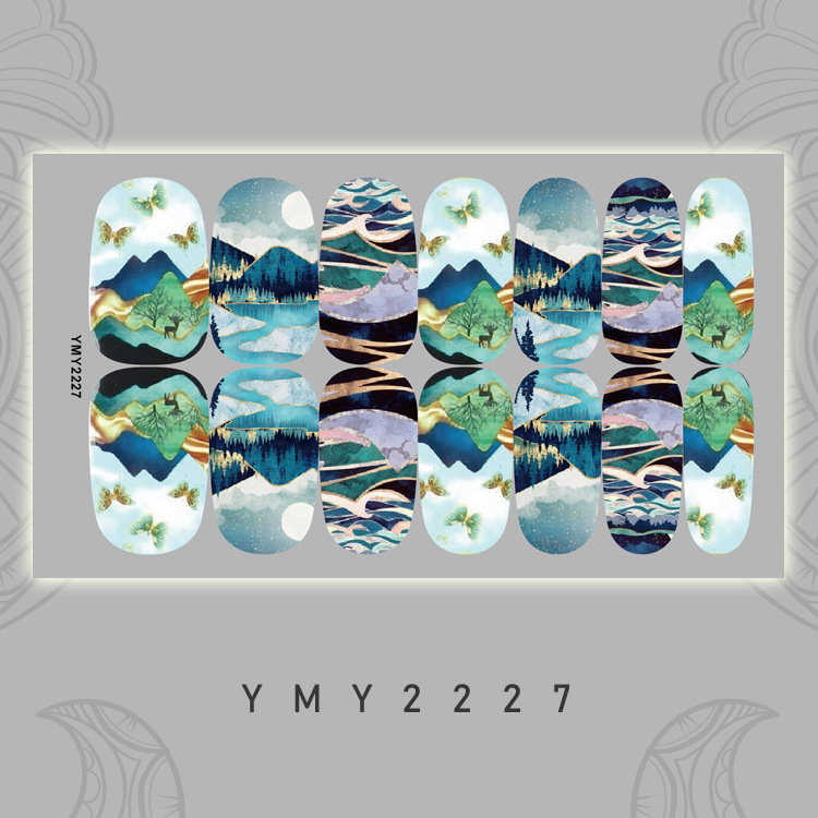 1 лист новые градиентные мраморные серии наклейки для дизайна ногтей бумажный клей слайдер акварельный Маникюр полное покрытие обертывания патч украшение