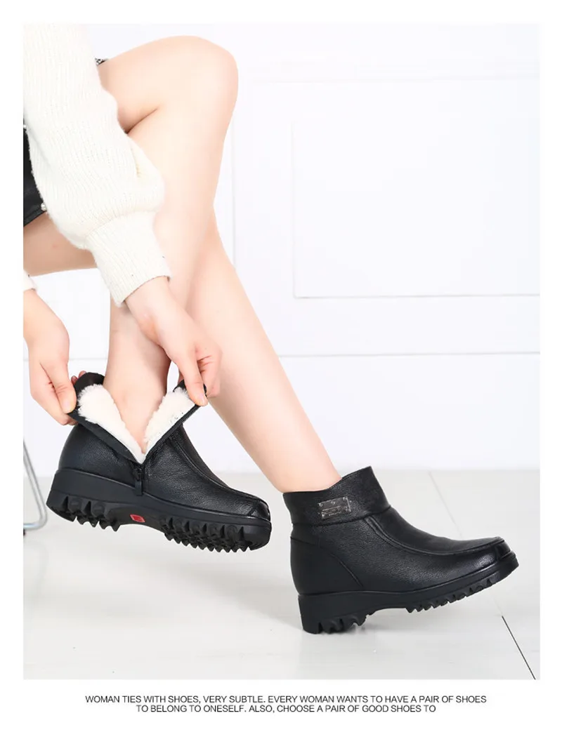 Женские зимние ботильоны на танкетке из натуральной шерсти молнии | Обувь