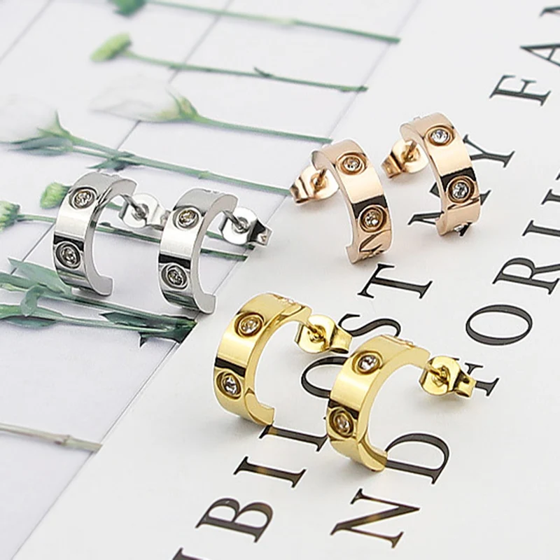 C в форме сердца серьги-гвоздики Роскошные ювелирные изделия для женщин и мужчин