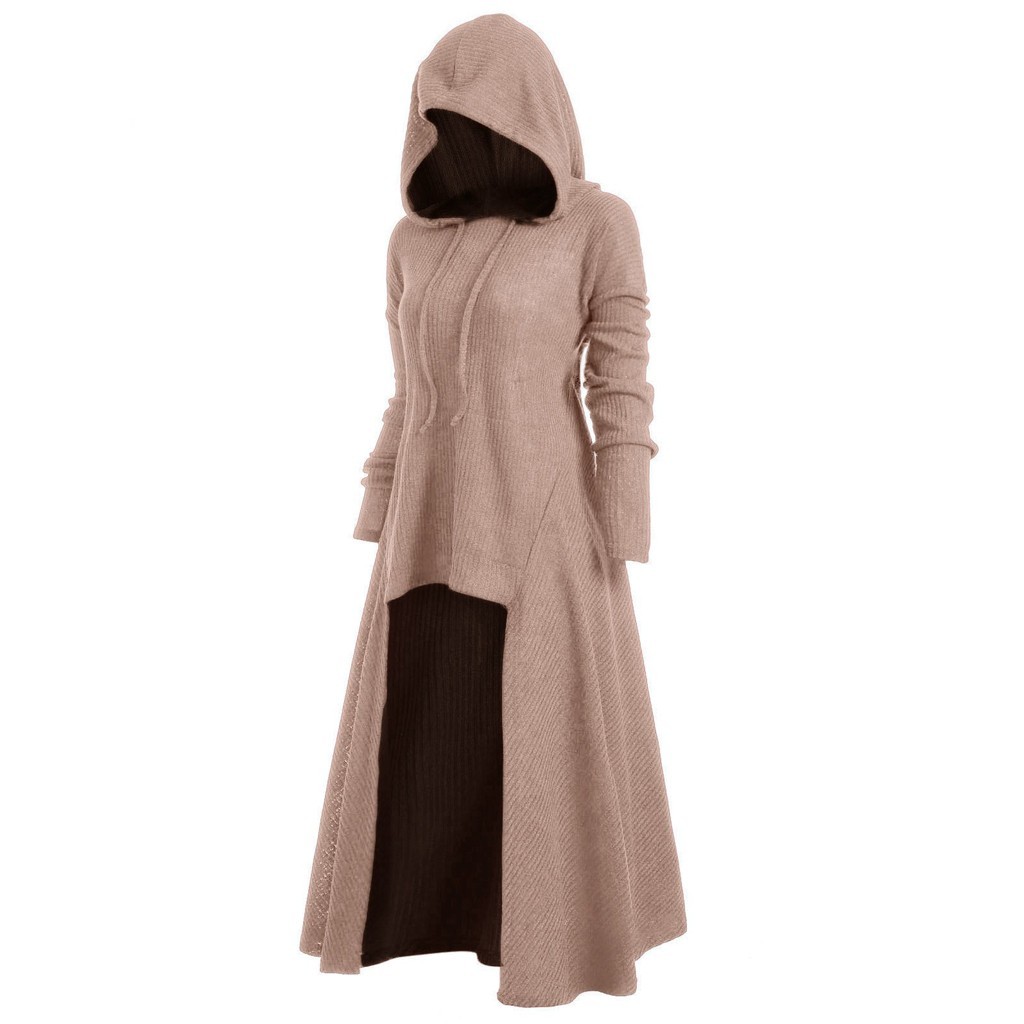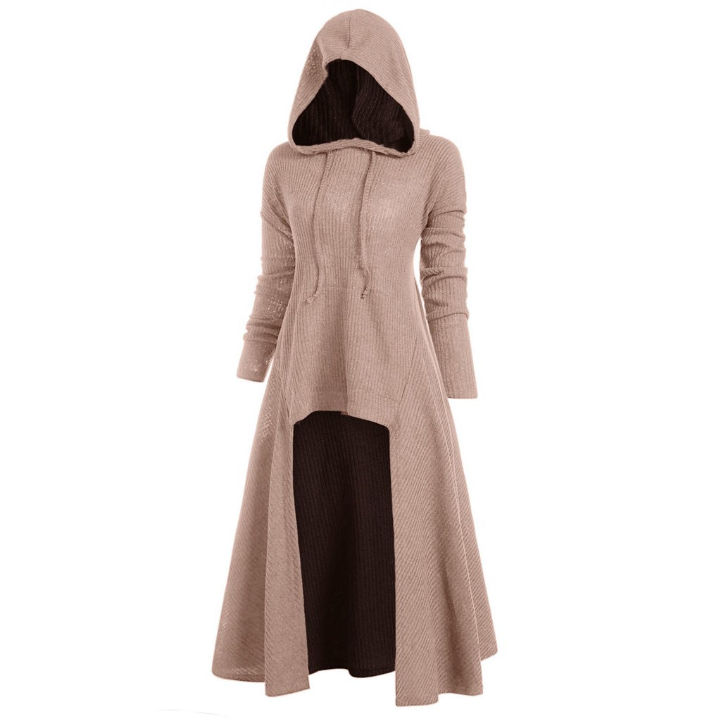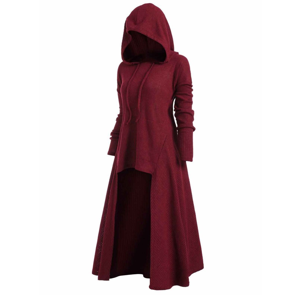 Женская мода с капюшоном размера плюс винтажный плащ с высоким низом свитер Блузка Топы