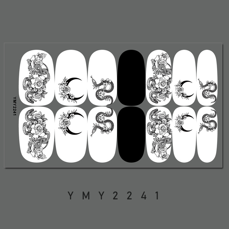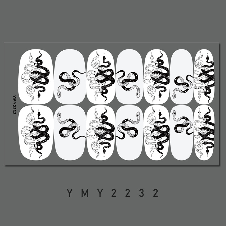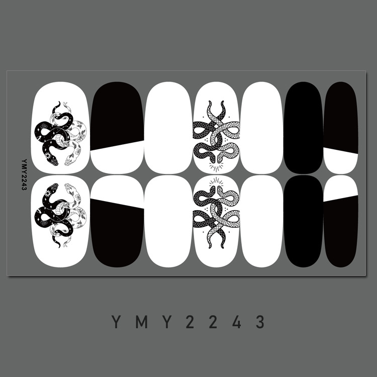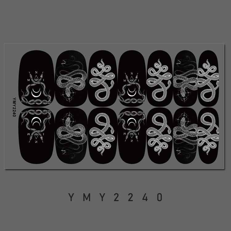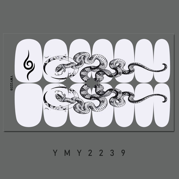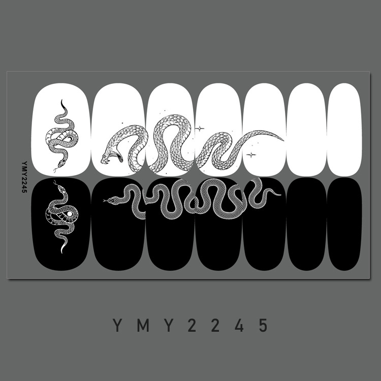 Дизайн «Змеиный дракон», наклейки для дизайна ногтей, модная черная змея, принадлежности для тату, клей для обертывания ногтей, маникюр, сделай сам, слайдеры с клеем для спины