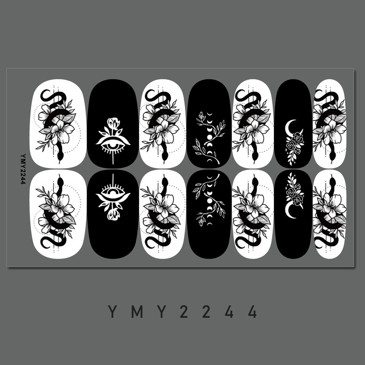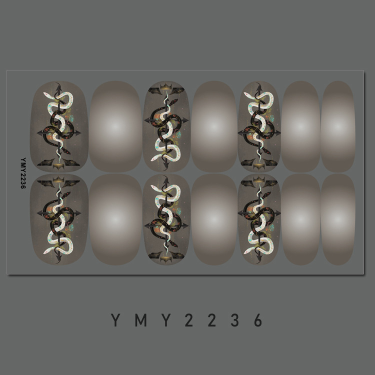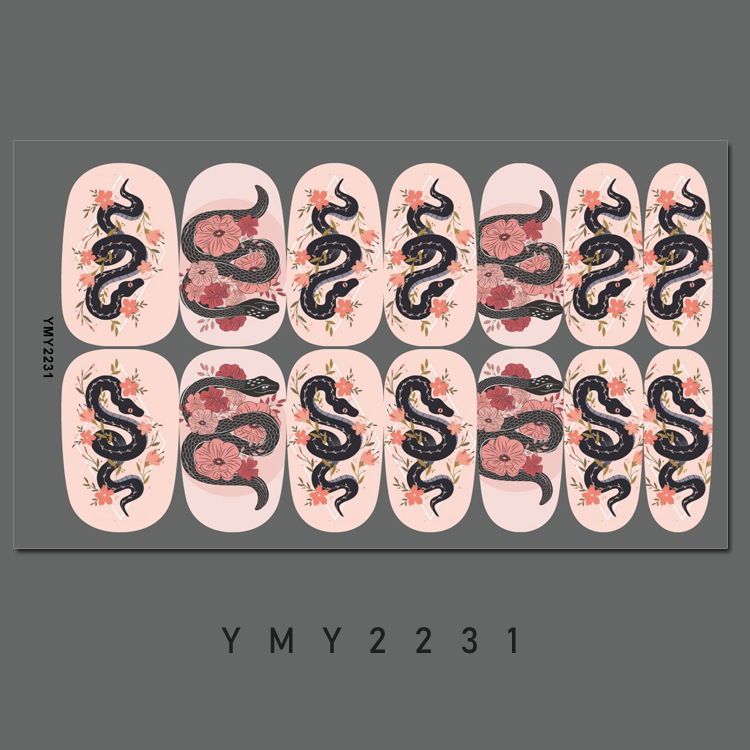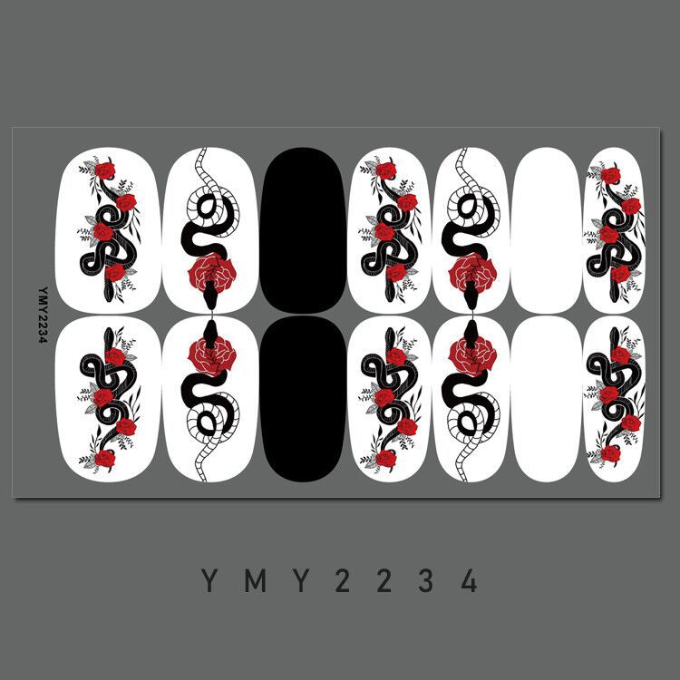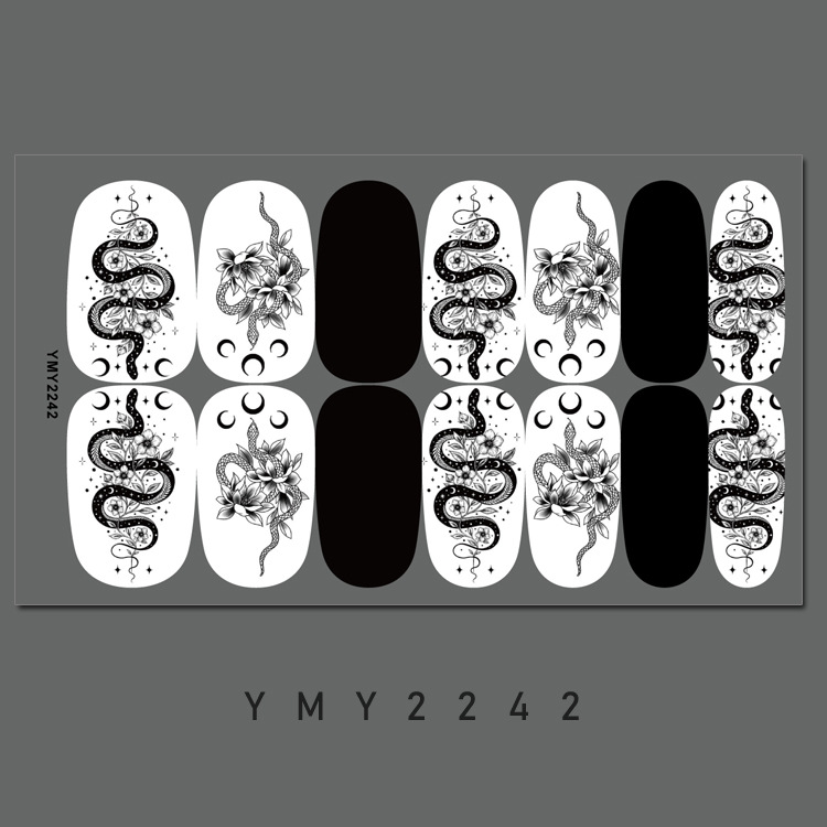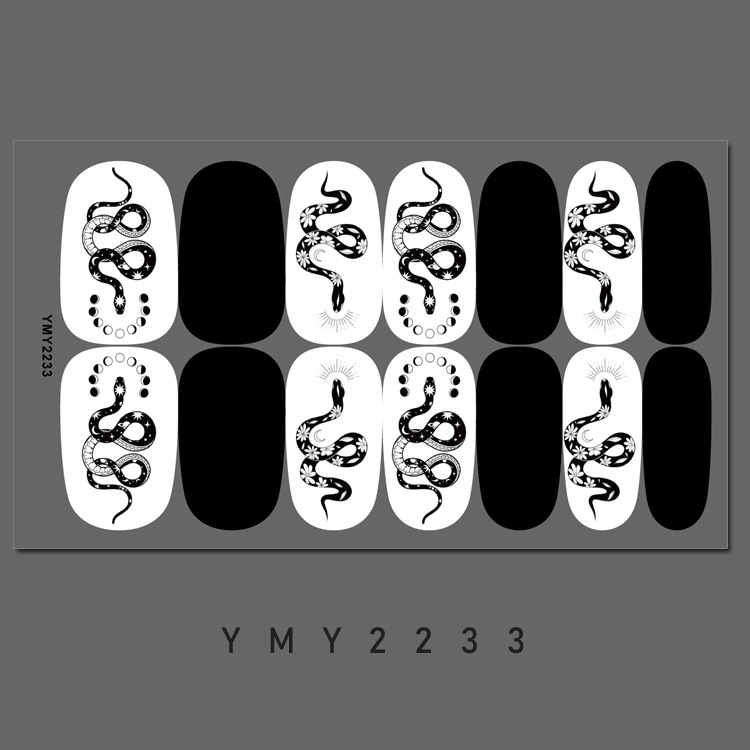 Дизайн «Змеиный дракон», наклейки для дизайна ногтей, модная черная змея, принадлежности для тату, клей для обертывания ногтей, маникюр, сделай сам, слайдеры с клеем для спины