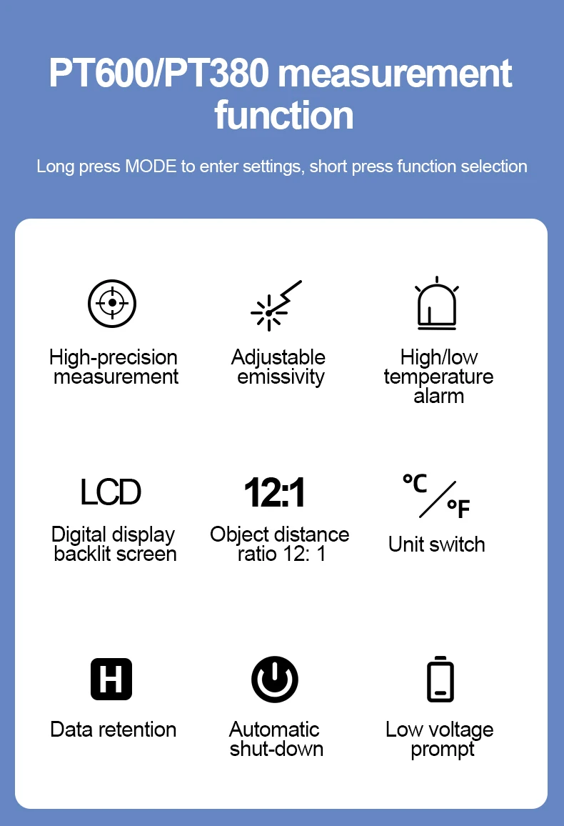 Примечание: Это промышленный термометр, пожалуйста, не используйте его для измерения человеческого, он не будет точным.