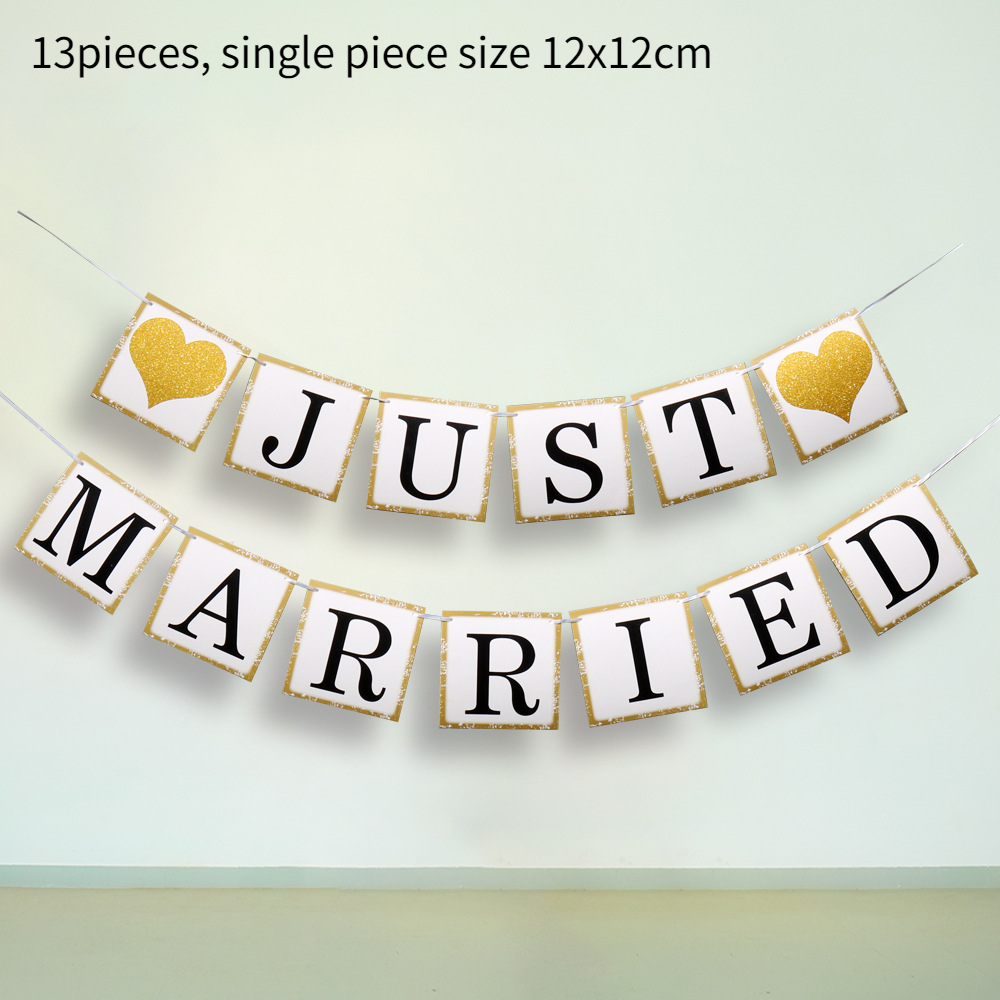 [Название продукта]:Новый позолоченный только что замужний флаг с надписью.