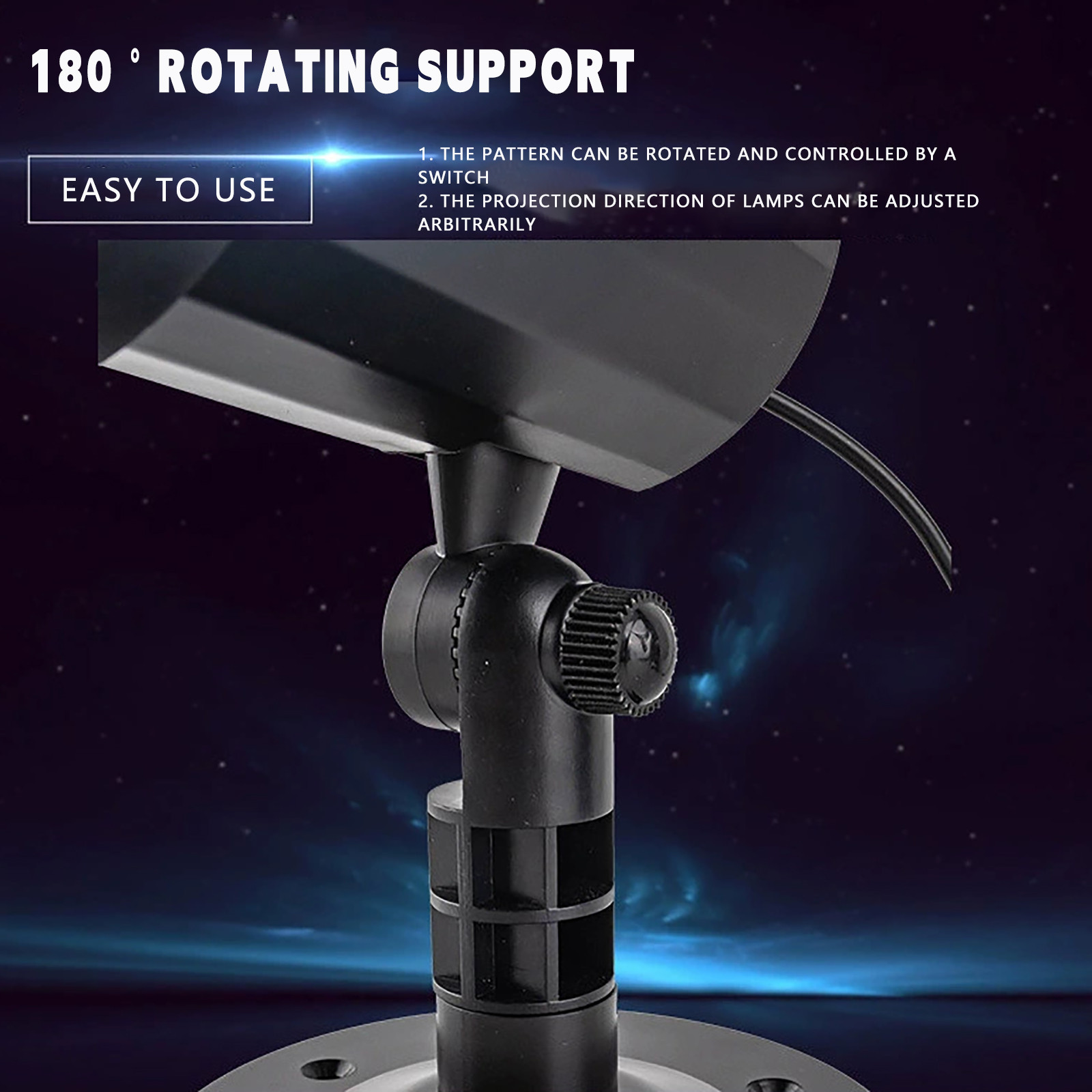 - Светильник снегопада может свободно вращаться на 180 ° позволяет изменить направление этого прожектор с эффектом снегопада светильник s. Регулировка угла с помощью ручки для удовлетворения ваших различных потребностей.