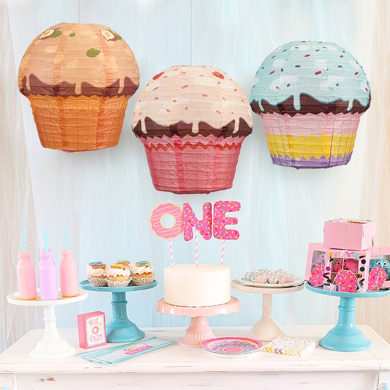 Креативная форма для капкейков, складной фонарь, разноцветный мультяшный торт, подвесная бумажная лампа, детский душ, реквизит для дня рождения