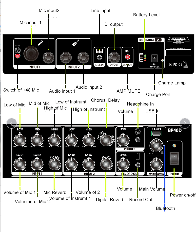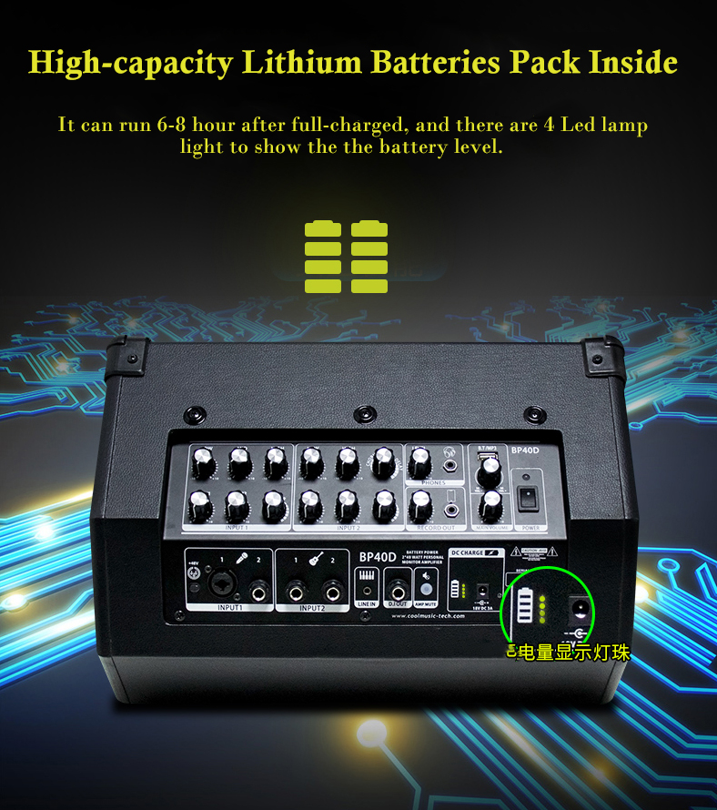 80 Вт BP-40D усилитель обеспечивает полный и естественный тон для акустической гитары и микрофона и т. Д. |
