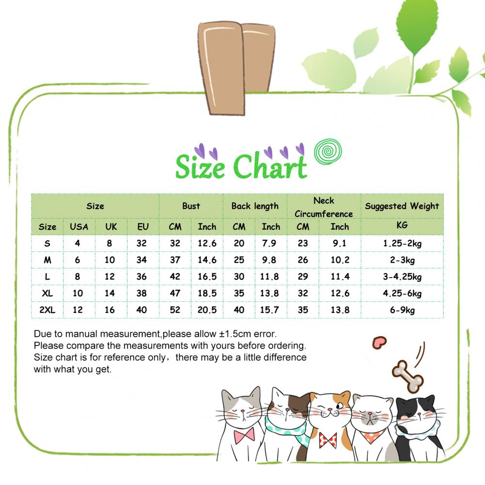 Size: 2XL, Bust: 52cm/20.5", Back Length: 40cm/15.7", Neck Cumference: 35cm/13.8", Suggested Weight: 6kg-9kg (Approx.)