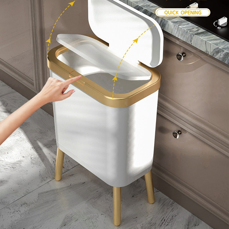 Роскошный модный белый золотой кухонный мусорный бак 15 л большой вместимости с крышкой мусорное ведро для гостиной диван сторона высокие ноги мусорное ведро