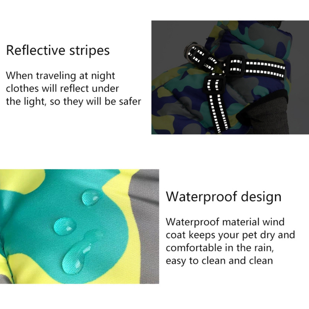 1. Водонепроницаемый Дизайн: ветрозащитная куртка из водонепроницаемого материала сохраняет вашего питомца сухим и комфортным в дождь, легко моется и сохраняет его в чистоте