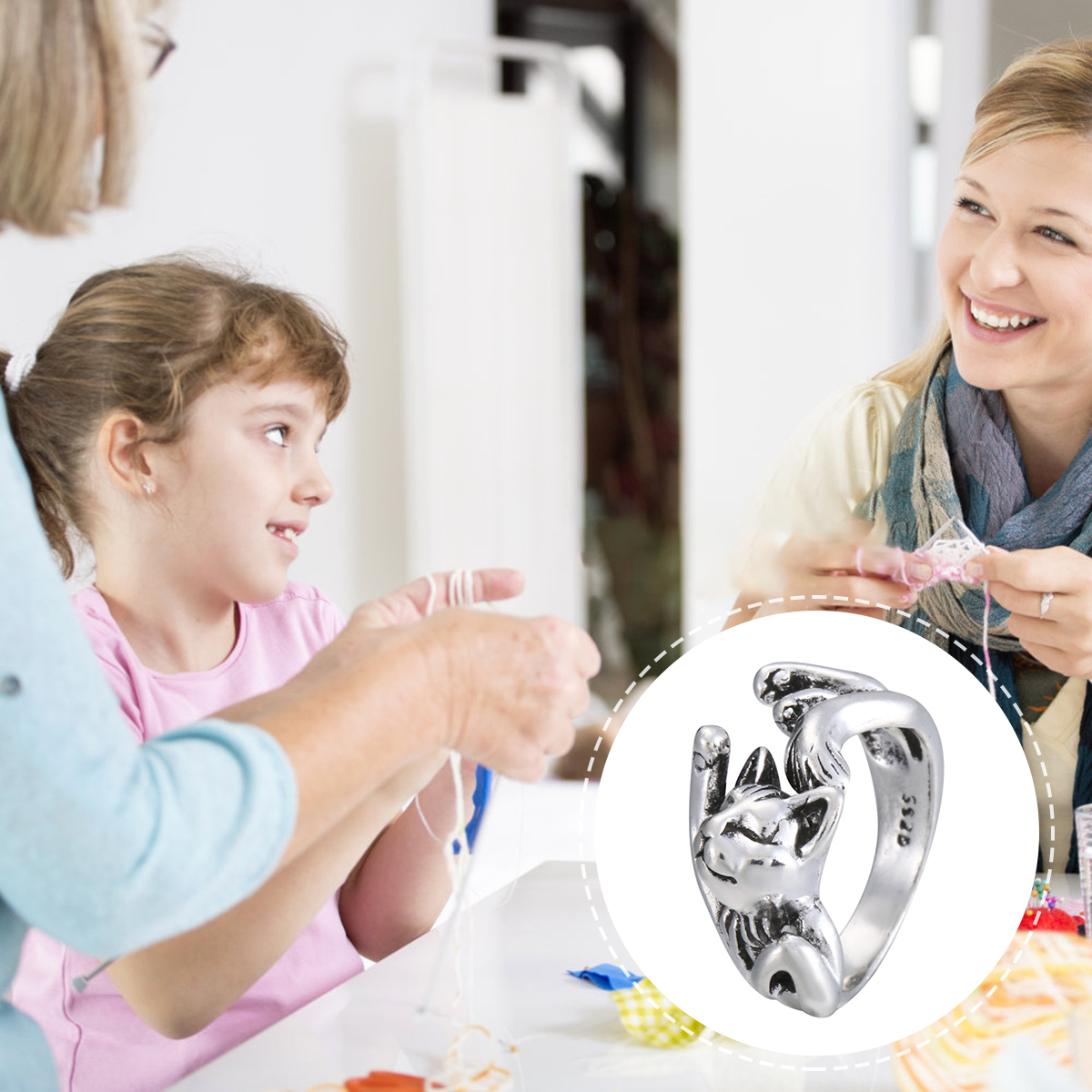 【Изысканный дизайн 】Это вязаное крючком кольцо имеет симпатичную форму кота, которую можно использовать не только как вязаное кольцо, но и как красивый аксессуар для повседневной носки